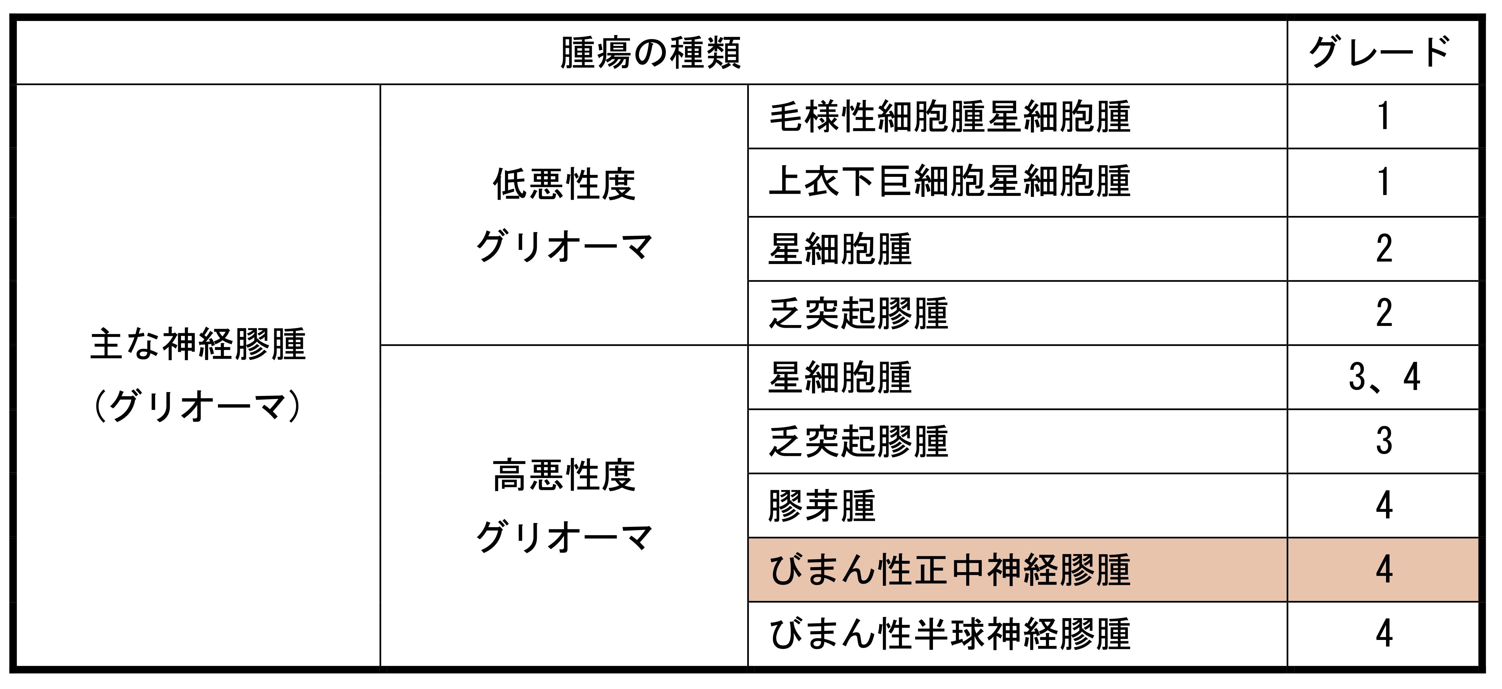 表1 グリオーマの種類とグレード