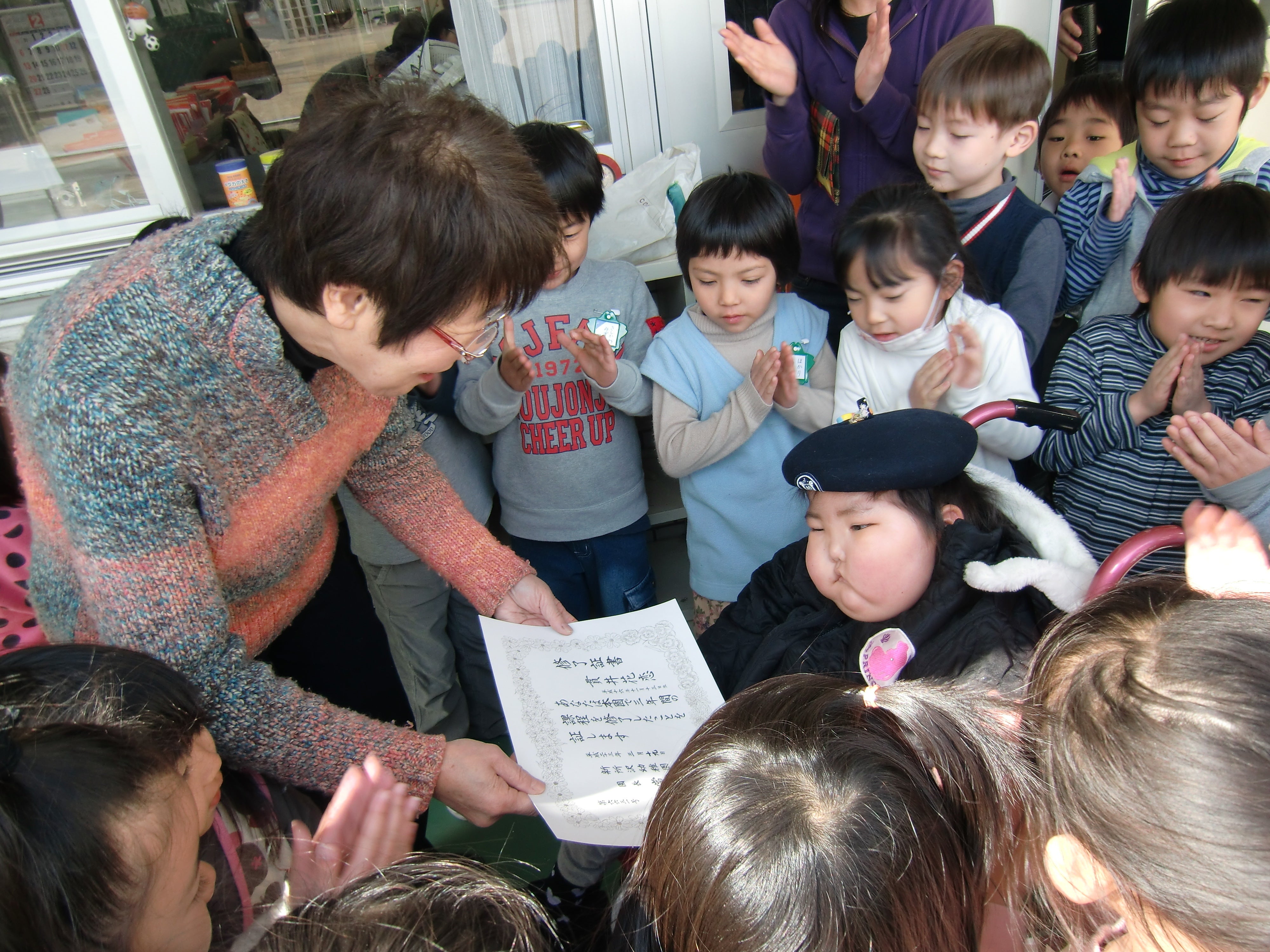 かれんと同様に、毎月のように届く悲報。多くのお子さんをこれまで見送ってきました。しかし、もういいでしょう。ここでこの悲劇を止めましょう。そんな気持ちで志を同じくする仲間と共に、このプロジェクトを計画しました。娘かれんの最期の幼稚園 卒園証書をもらう