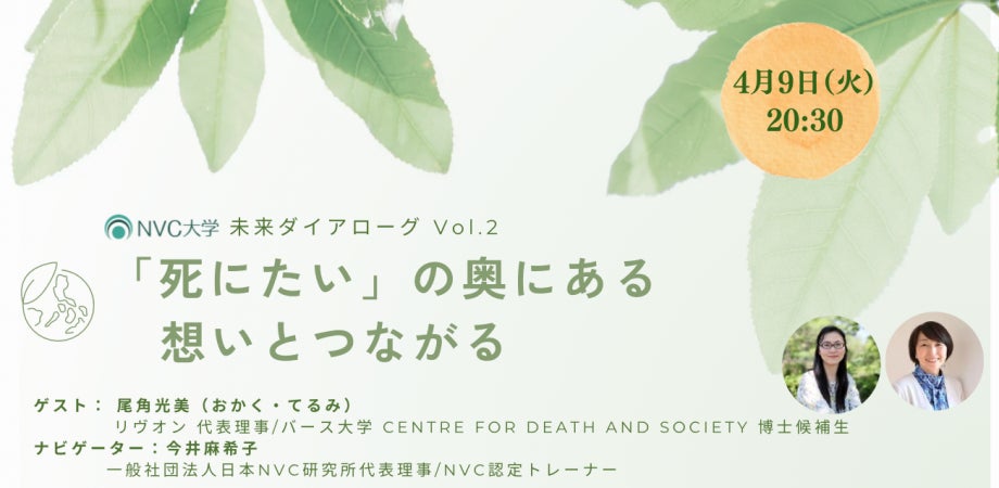 今回のイベントでは、リヴオンの活動の紹介や、本プロジェクト への想いなどをお話させていただきながら、「死にたい」の奥にある本当に想いにつながることはどうやったらできるのかを、NVCの観点からも紐解きつつ、今井さんとの対話を深めてゆきたいと思っています。