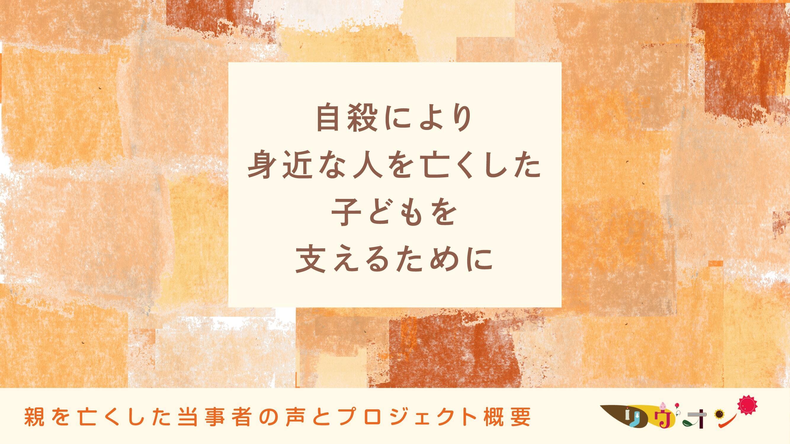 クラファンのプロジェクトの2本柱の一つ「自殺により身近な人を亡くした子どもを支える」に関する動画を完成させました。ちょっと時間はかかってしまったけれど、なんとかクラファン期間中にお届けしたいと思ってつくりました。