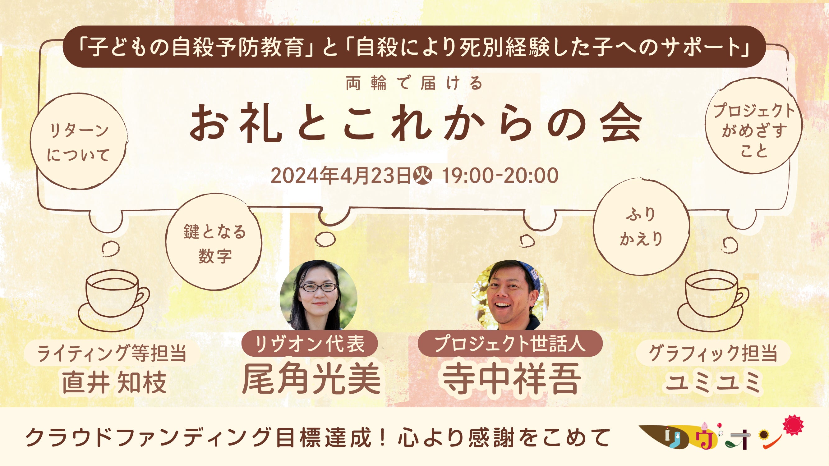 開催から動画配信まで一ヶ月以上が経っていますが、このタイミングで、もう一度みなさんと一緒にクラウドファンディングを振り返ることができたら、そして、リヴオンが考える「これから」をみなさんがどのように受け止めてくださるのかをお聞かせいただけたら嬉しいです。