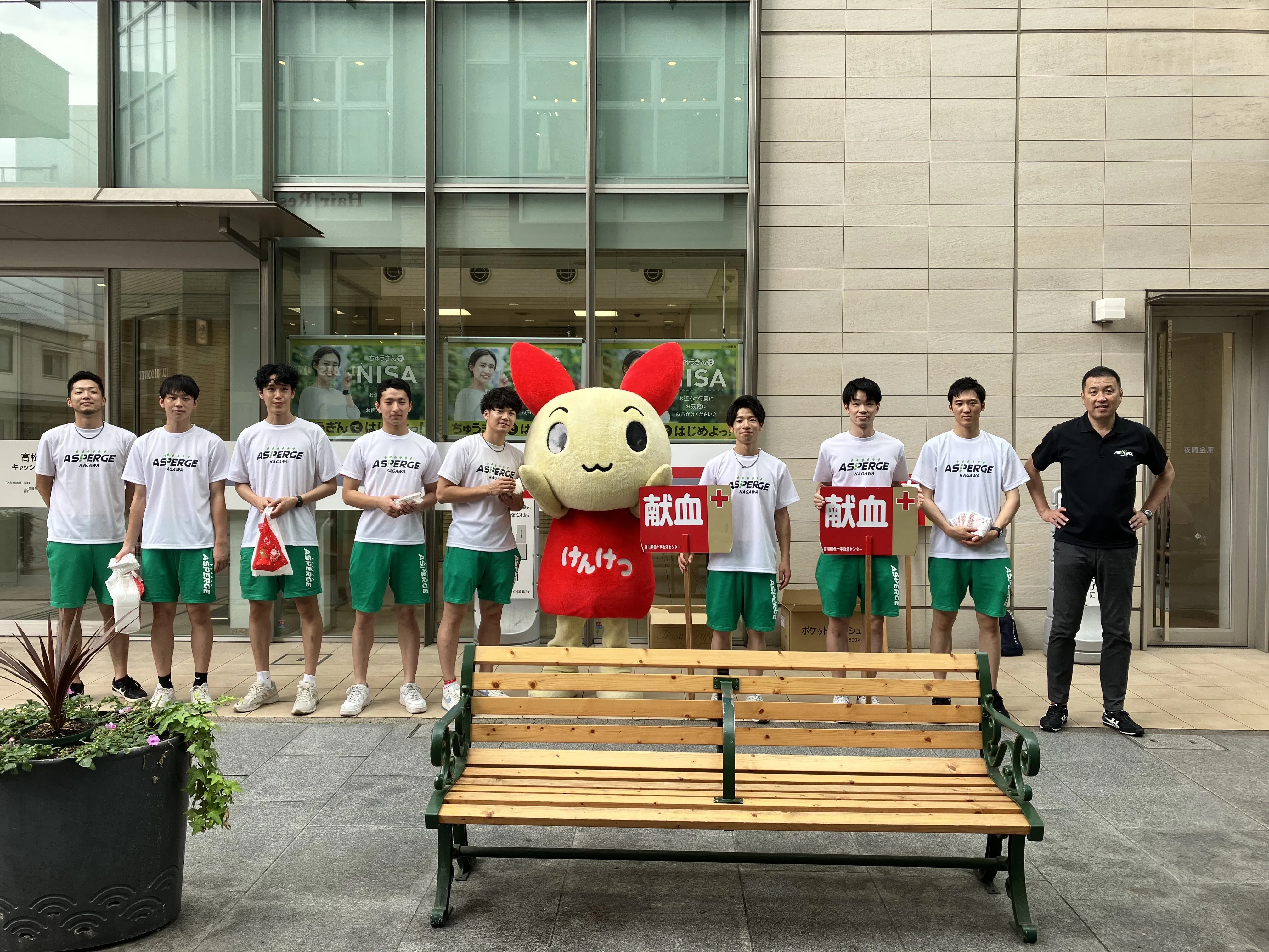 2023年7月8日(土)に高松市丸亀町献血ルーム オリーブにて、日本赤十字社と連携し社会貢献活動の一環として献血と啓発活動を行いました。