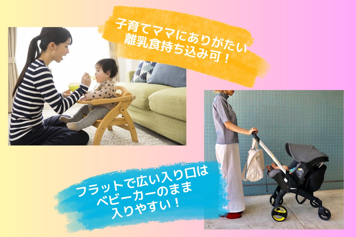 →路面店でフラットに入店ができ、ベビーカーのままでも入店しやすい。