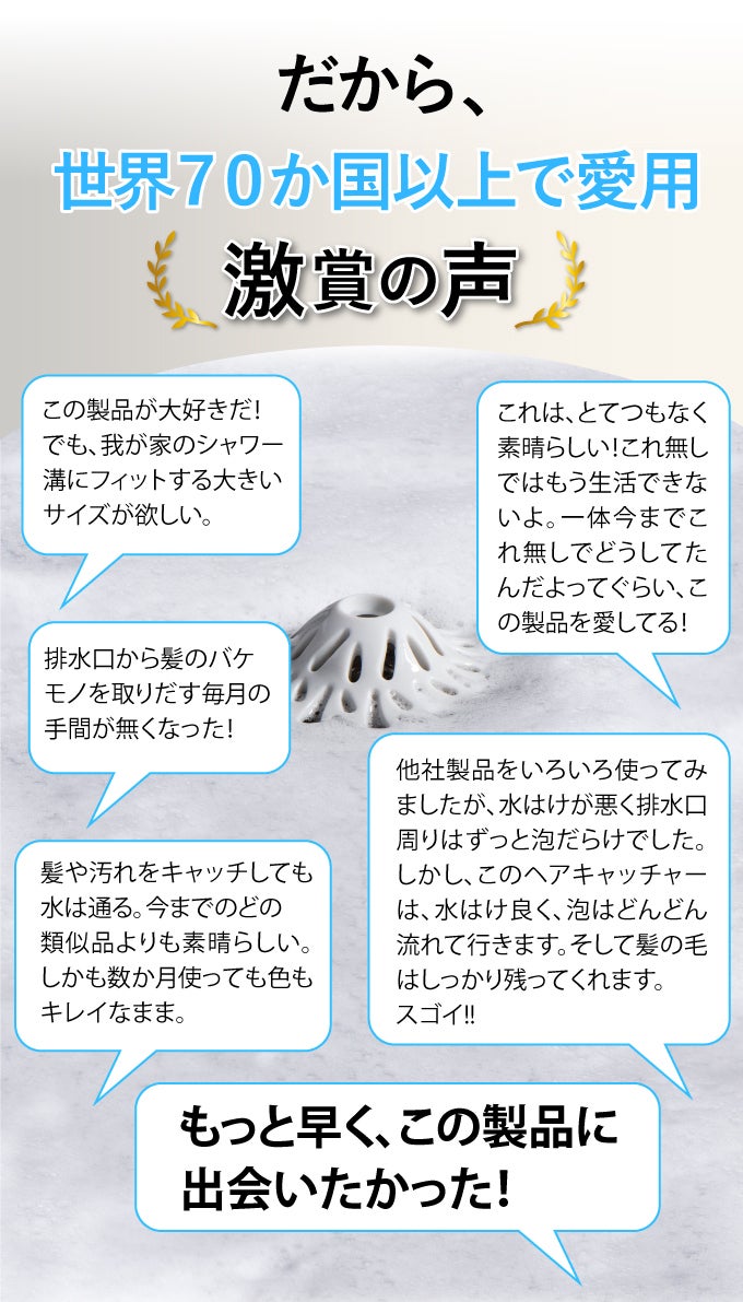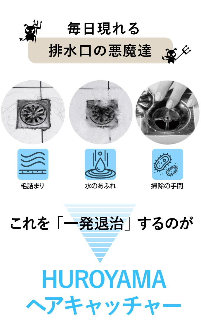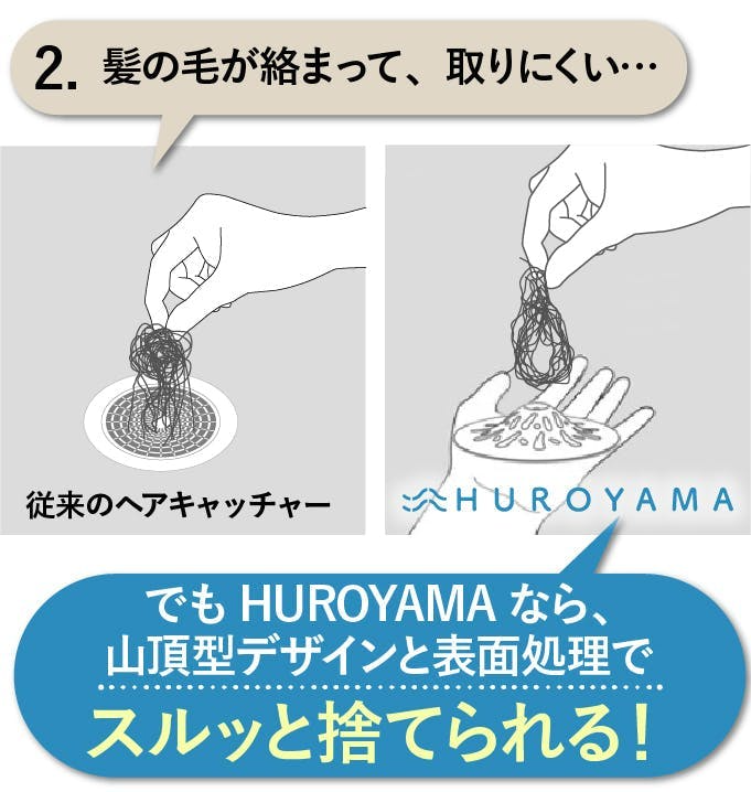 皆様、どうかこのHUROYAMAを手に入れていただき、あなたが毎日直面しなくてはいけない排水口にまつわるフラストレーションをこのシンプルな方法で取り払ってください。