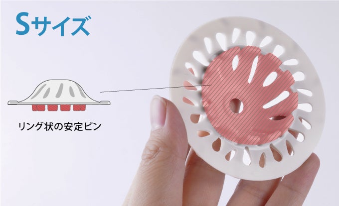 LサイズとMサイズには2本の安定ピンが、Sサイズにはリング状の安定ピンがついています。