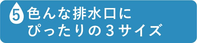 この3兄弟が揃うことによって、浴室の床はもちろん、洗面台や、キッチンの流し、バスタブまで、様々な排水口に適応できるようになりました。