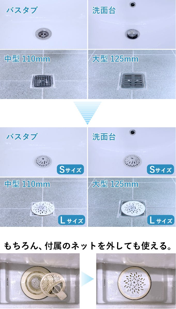 一方で、ユーザーの皆様から、排水口のタイプに合わせた更なるサイズ展開のご要望も多くいただきました。