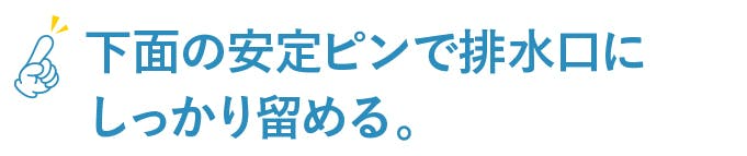 HUROYAMAは下面に安定ピンがついており、排水口の穴に挿すことができます。