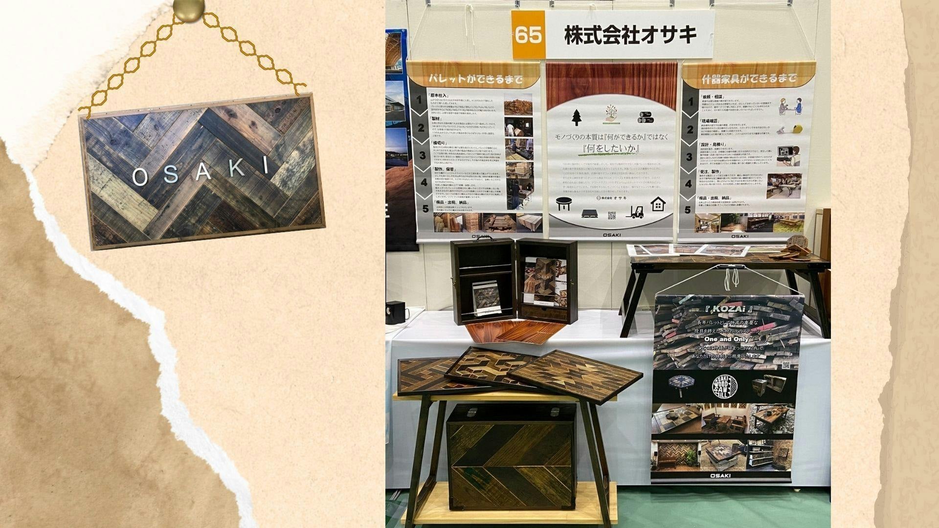 ㈱オサキは木製パレットの廃材を使ったものづくりを展示/紹介していました。