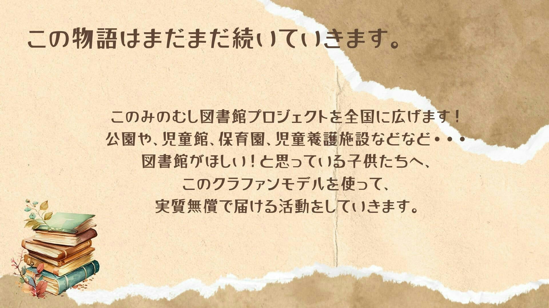 そしてそして、今回のクラファン達成とみのむし図書館第一号完成がゴールではありません。