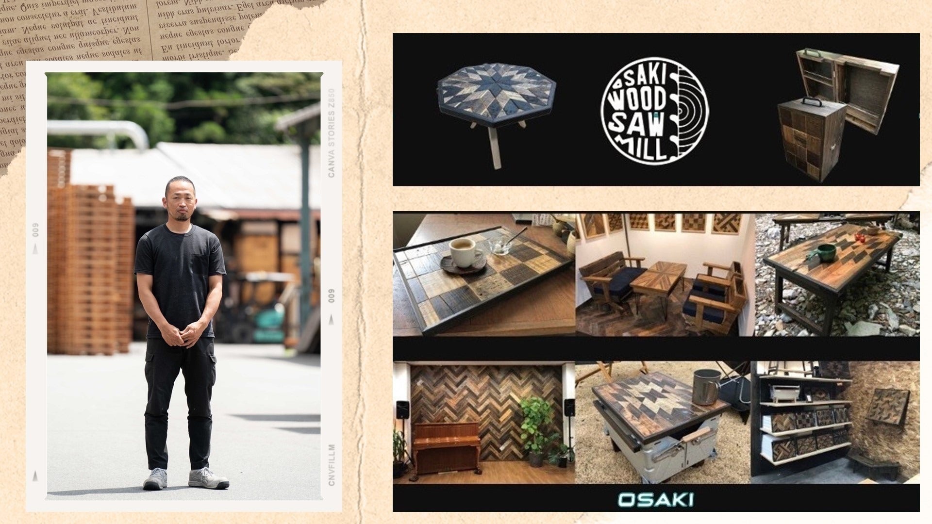 兵庫県の中西部に位置し、面積の約9割を森林が占めており、古くから林業が盛んな街宍粟市にて、物流には欠かせない木製パレットの製造や、店舗/オフィスの内装家具製造などを行っている会社、株式会社オサキの代表をしています。