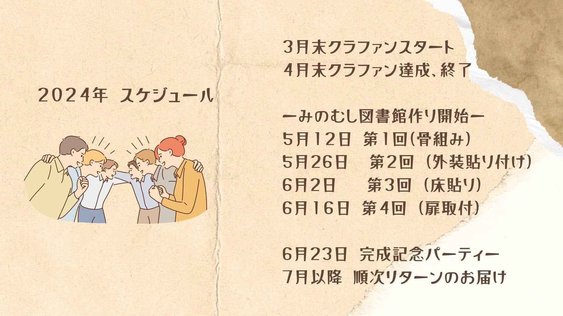 みのむし図書館プロジェクト第一号が完成するまでのスケジュールです!