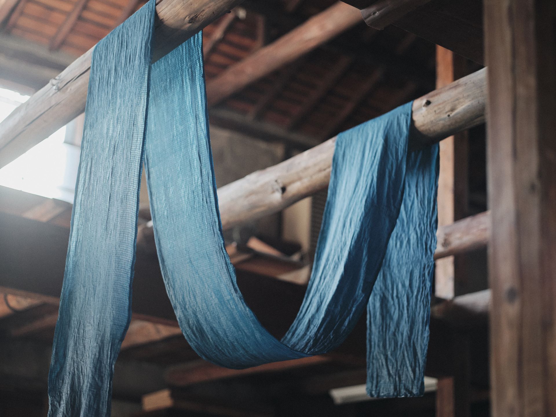 発酵建ての藍は色の粒子が大きく生地にしっかり入り込み、絡みつき定着することにより、