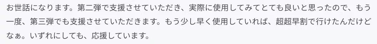 総支援額1,000万円を達成しました。そして今回は...