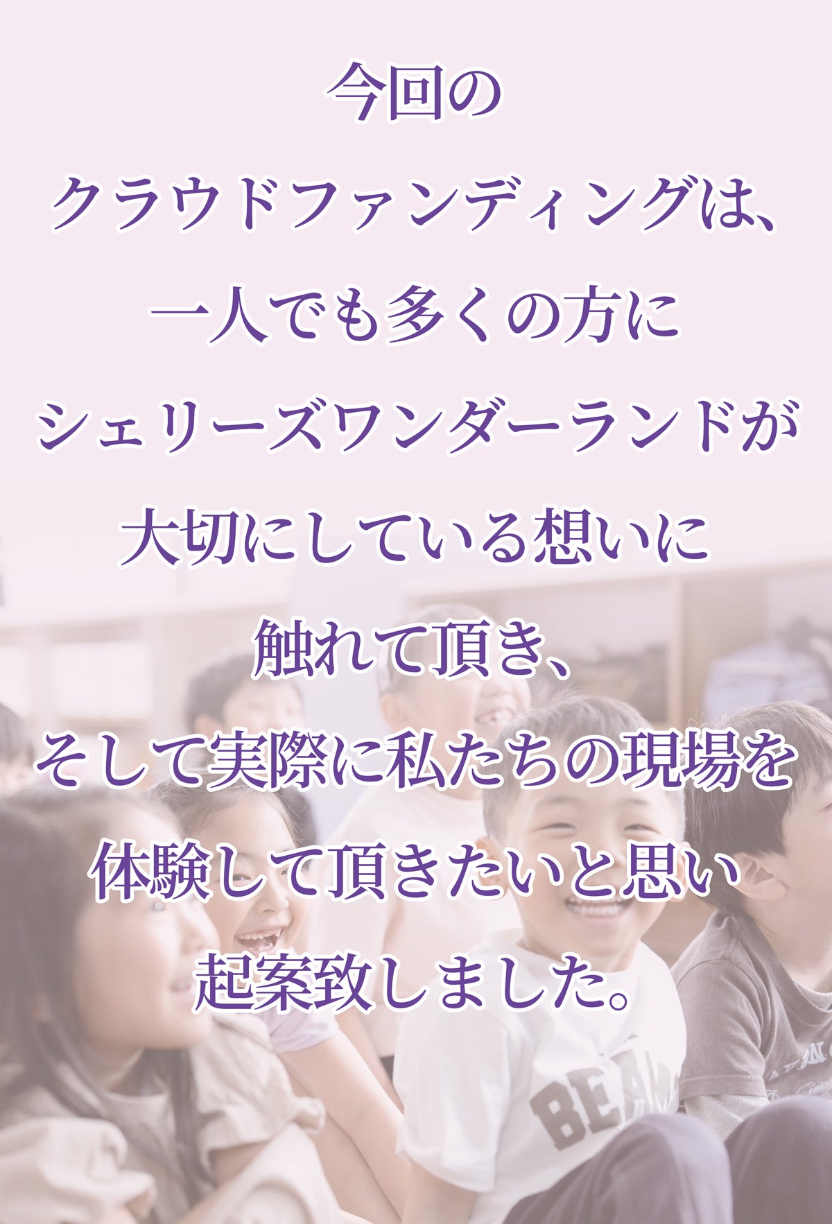 続いて、シェリーズワンダーランドが大切にしている想い、環境、そして子ども達と共に目指す未来についてご説明させてください。
