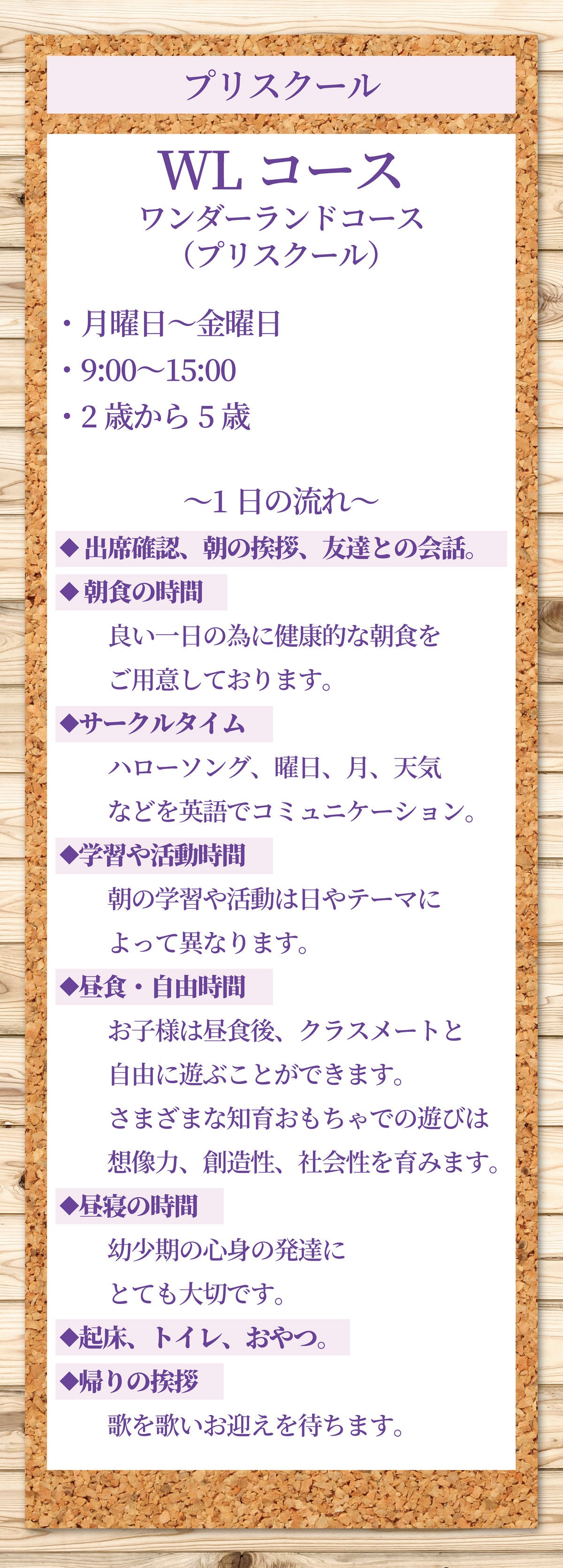 当校の保育園としてのプリスクール、そして高校生までが通えるアフタースクールの内容についてそれぞれご説明させてください。