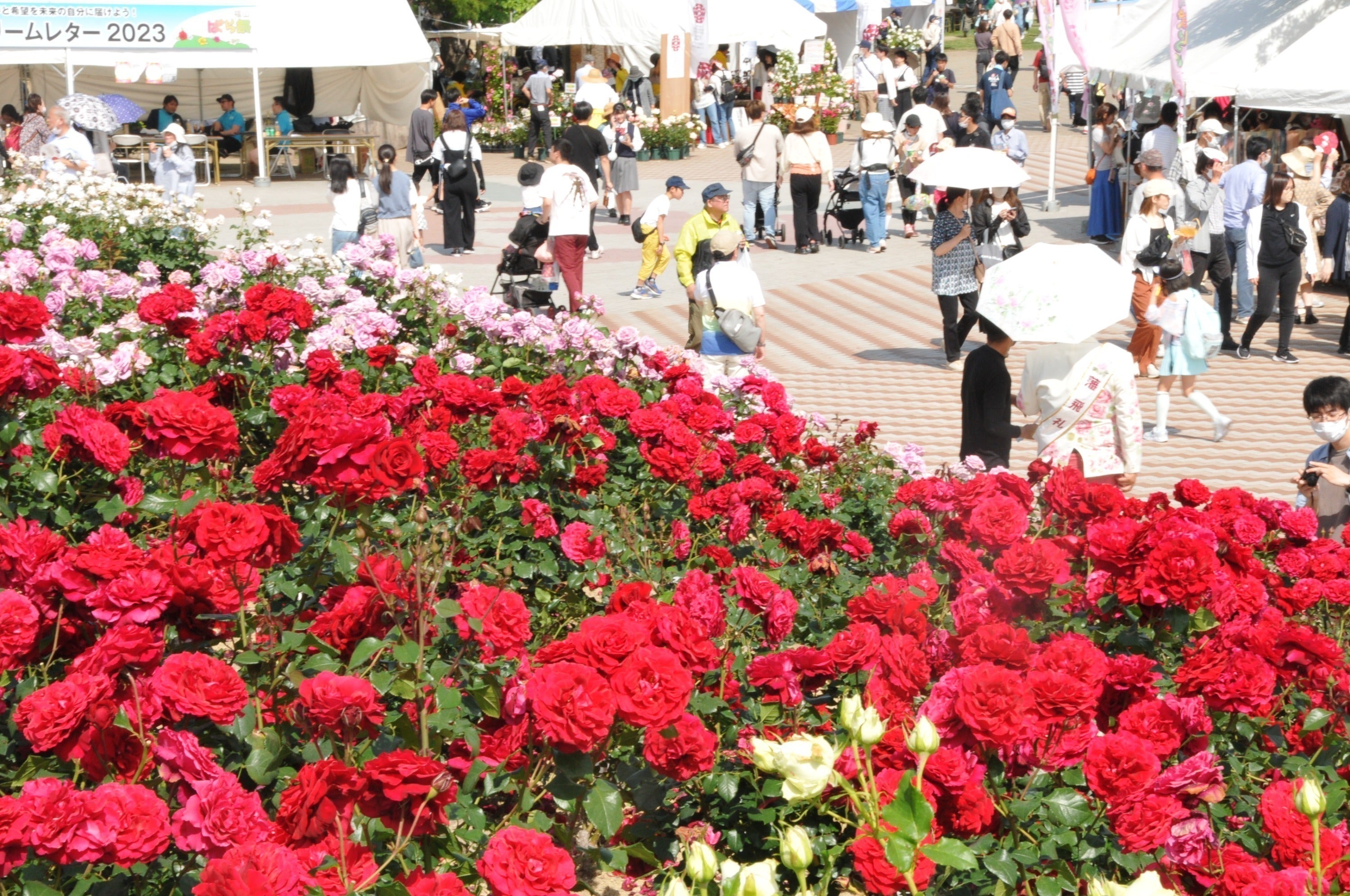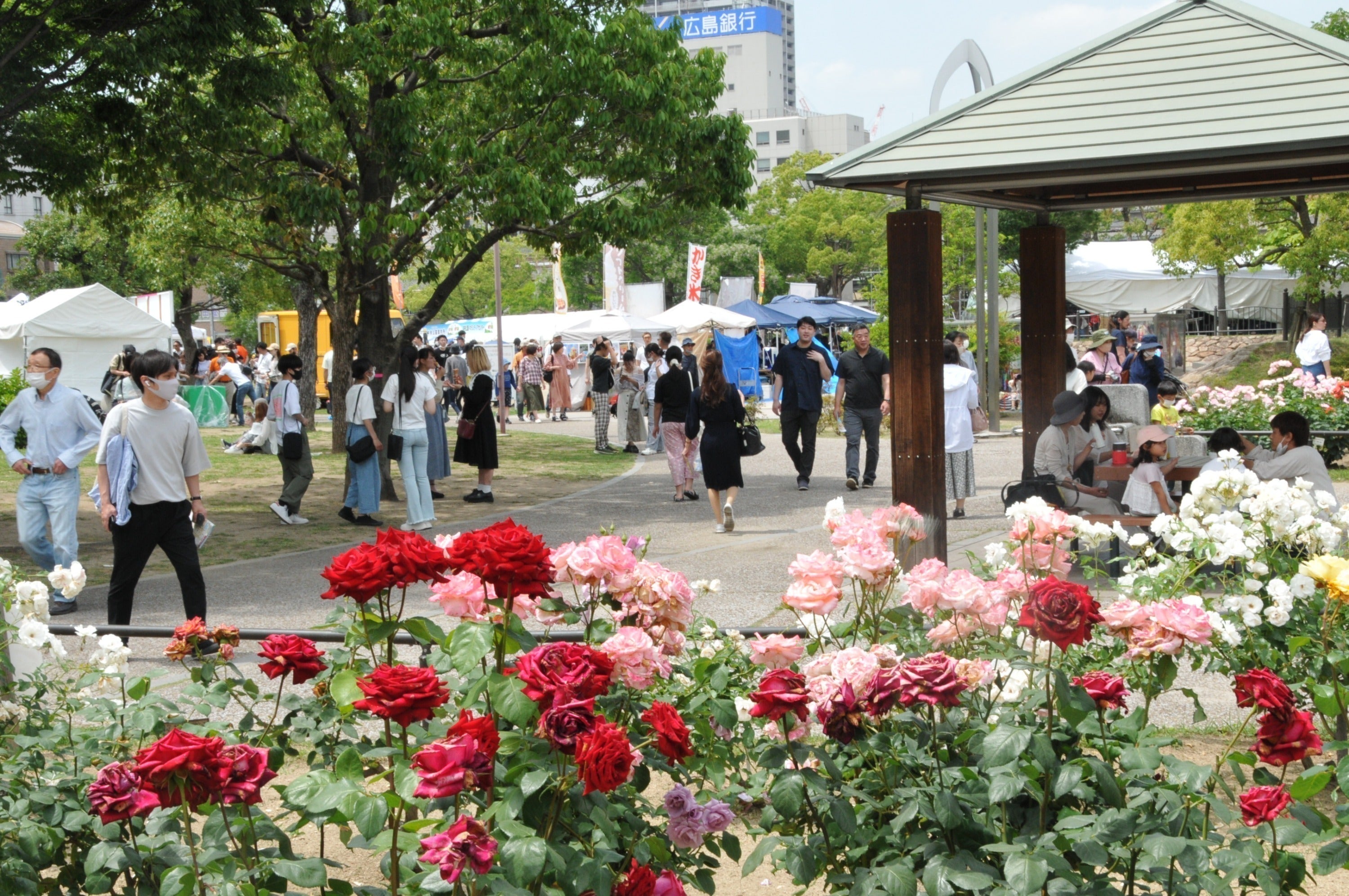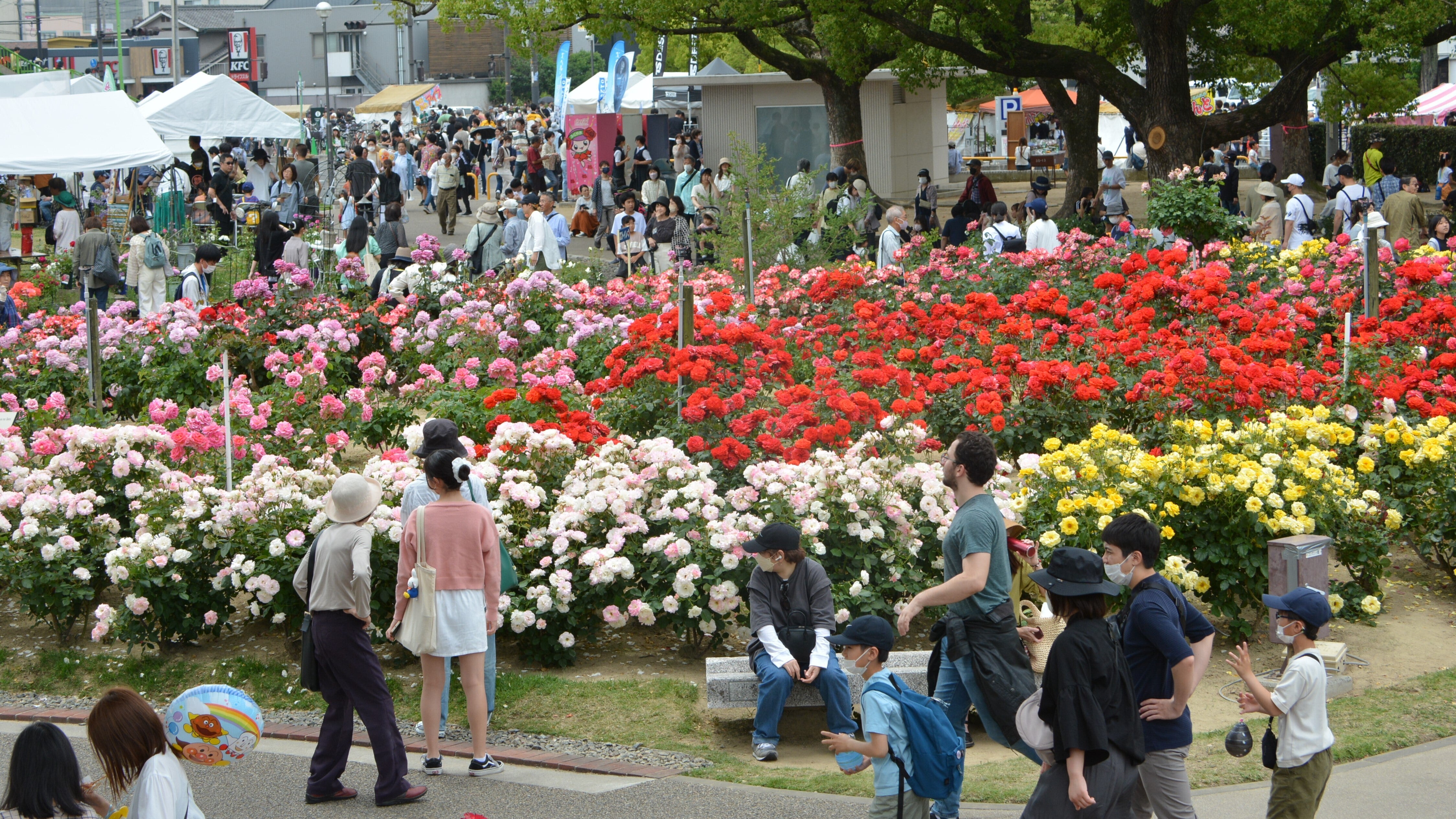 ▲福山市内の公園には、数多くのばらが咲き誇ります。