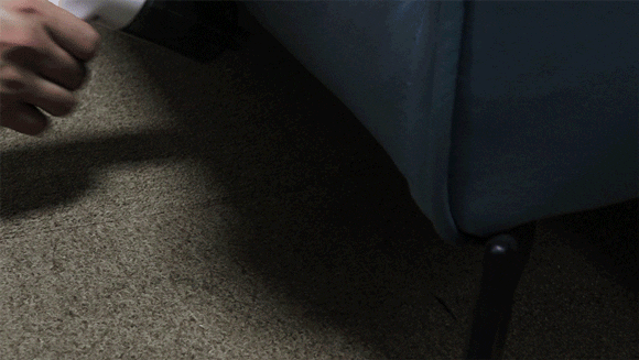 「Theo」のライトは掃除中に見えないチリも明るく照らすことができ、きれいに掃除できます。