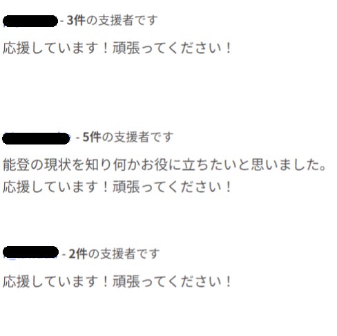 たくさんのご支援ありがとうございます。