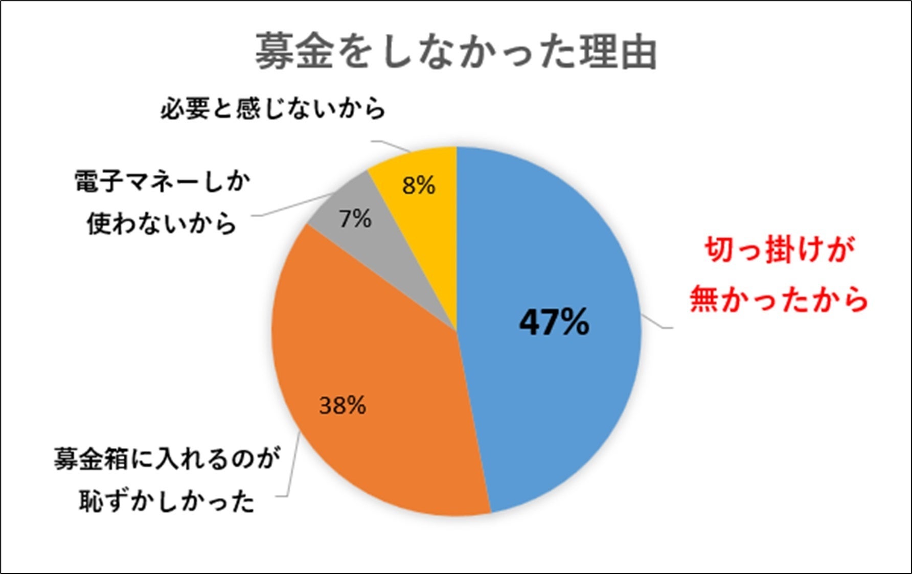 1番多く、続いて「募金箱に入れるのが恥ずかしい」との回答が2番目に多くなっています。