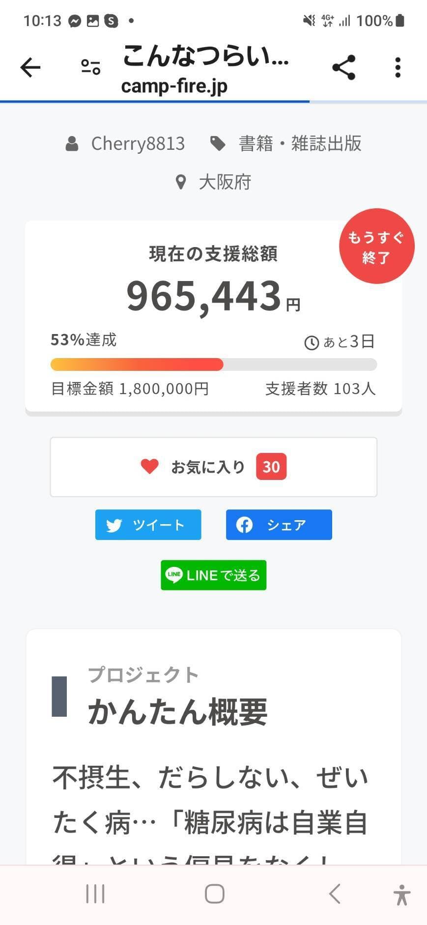 2024/05/04 16:13こんにちは(^^)このプロジェクトオーナーのミマスチエリです(^^)4月30日で一旦このプロジェクトは終了しました。本当に皆様ありがとうございました!!今回プロジェクトを立ち上げた一番の理由は・私と同じように、糖尿病から合併症になってしまい、苦しむ人を一人でも減らす!!という強い思いからスタートさせました。・本を出すことにどんな意味があるの?・ただの自己満足など厳しいお声もいただきました。それでも私は、たとえ一人でもいい。たった一人でも、私の本を読んで、私の存在を知って、勇気づけられる人が いるかもしれない。そんな思いで、動いてきました。クラウドファンディングはおかげさまで130人もの方にご支援いただくことができました。こんなにたくさんの方に応援していただけるなんて、想像しておらず、本当に本当に嬉しく、感謝の気持ちでいっぱいです。たくさんの方のお気持ちが詰まったお金。社会を変える第一歩の書籍の出版のために、大切に使わせていただきます。本当にありがとうございました!!今月は仙台にも行き、東京にも何度も行きました。そして昔からの大好きな友人、地元の商工会議所、自分が所属しているボランティア団体【わりばしの会】、倫理法人会、経営者コミュニティの貢献屋、小さいころからの習い事であるLABO、などに関わっているたくさんの方々に、ご支援いただき応援してもらい、本当に感謝の気持ちでいっぱいです。皆様の温かい気持ちが私のパワーとなり、このプロジェクトを立ち上げてから走りぬくことができました。4月の末には。私がこれから活動の中心にしようとしている講演を地元吹田の吹田さんくすホールで行いました(^^)糖尿病から合併症になり苦しむ人を一人でも減らす、ということが私の使命です。書籍の出版と講演活動で少しずつそれが進んできています!今後も活動の幅を広げていきます(^^)そしてそしてご報告があります。本当にたくさんの方々にご支援いただいたのですがあと少し、というところで終わってしまいました。・もう少し長ければ、、というお声もたくさんいただきました。クラウドファンディングの延長をすることにしました!!!皆様、引き続き応援していただければ嬉しいです!!!最後まで頑張ります!!s・ もっと見る