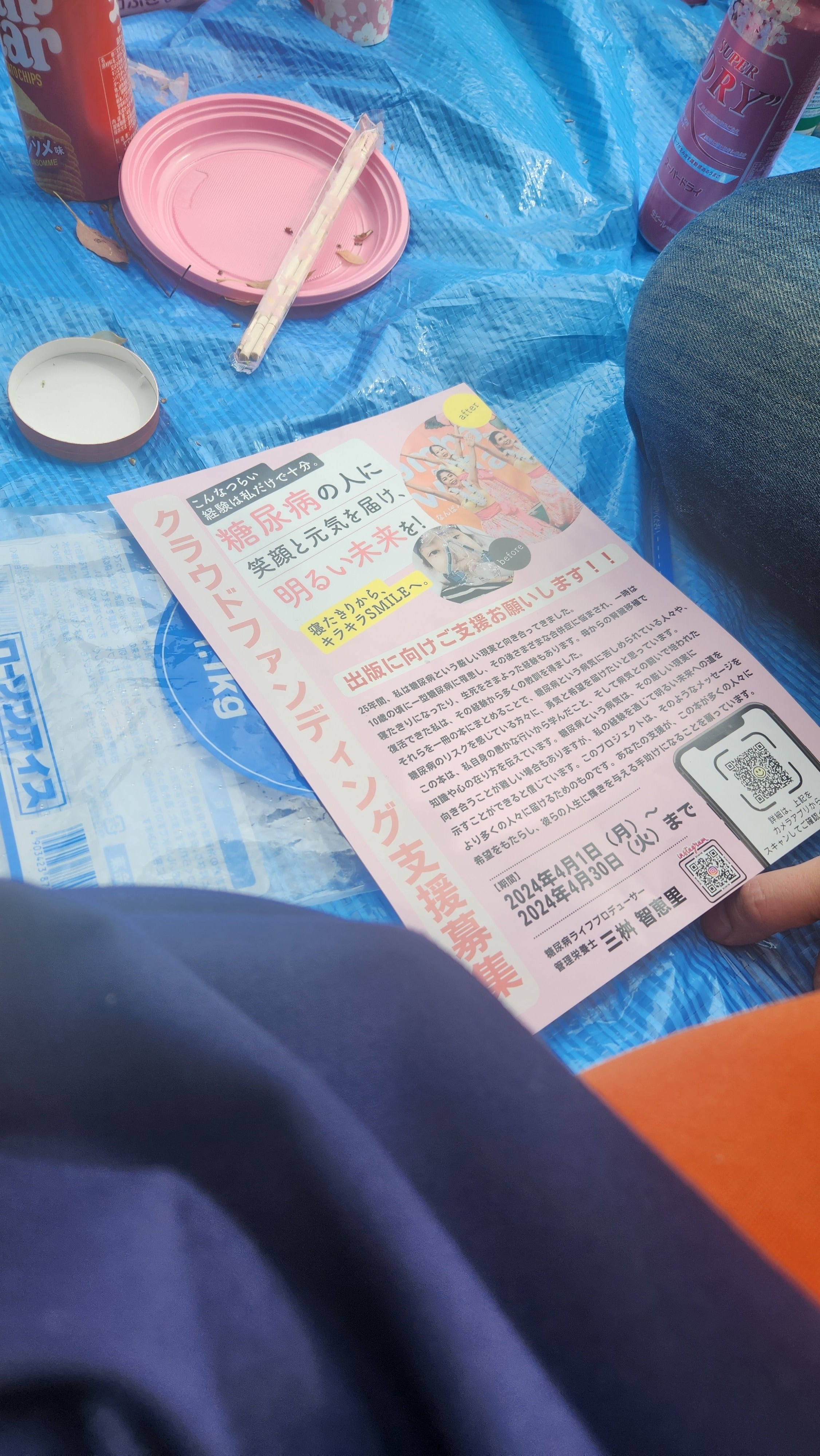 そんな中お花見で一緒になった人にクラファンのことを少しだけお話させて頂きました。