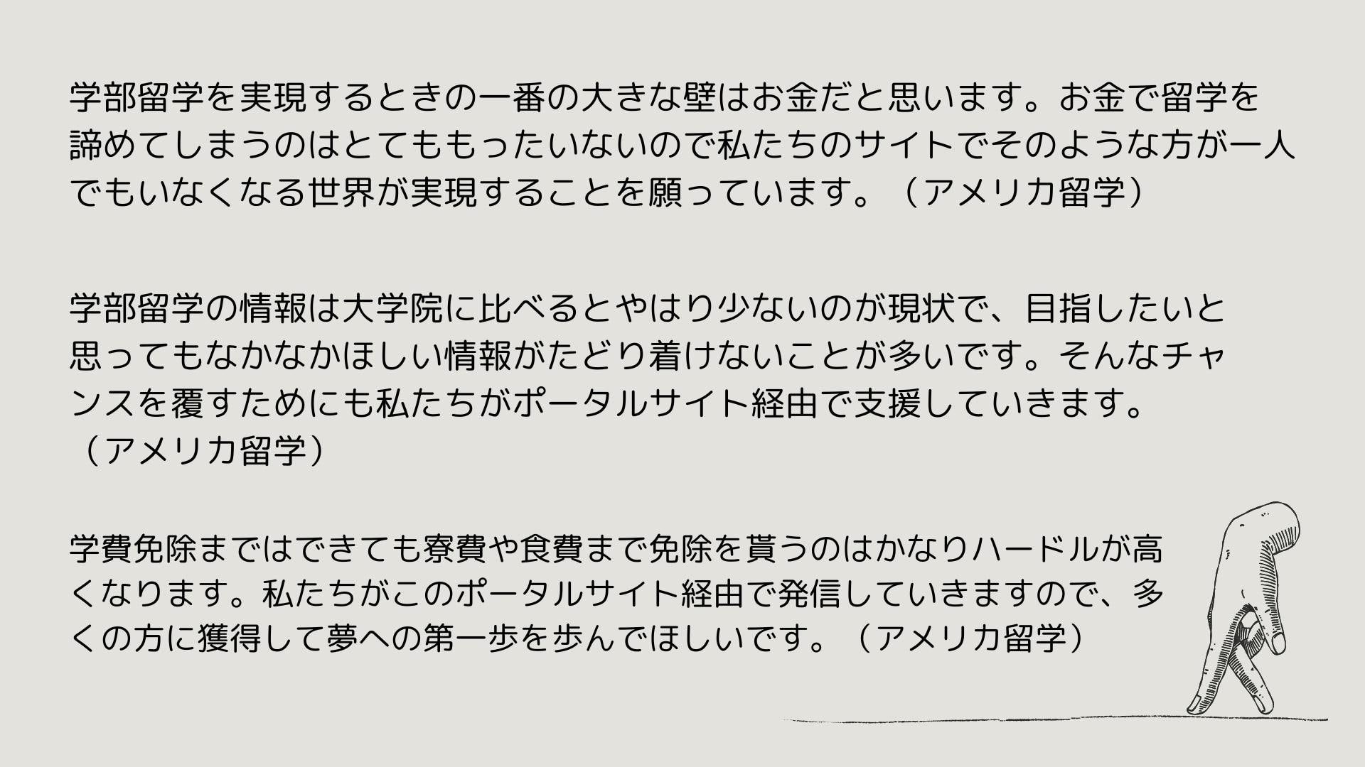 また、私たちもポータルサイトを作成する以上、日本一の学部留学向けポータルサイトを作成します。
