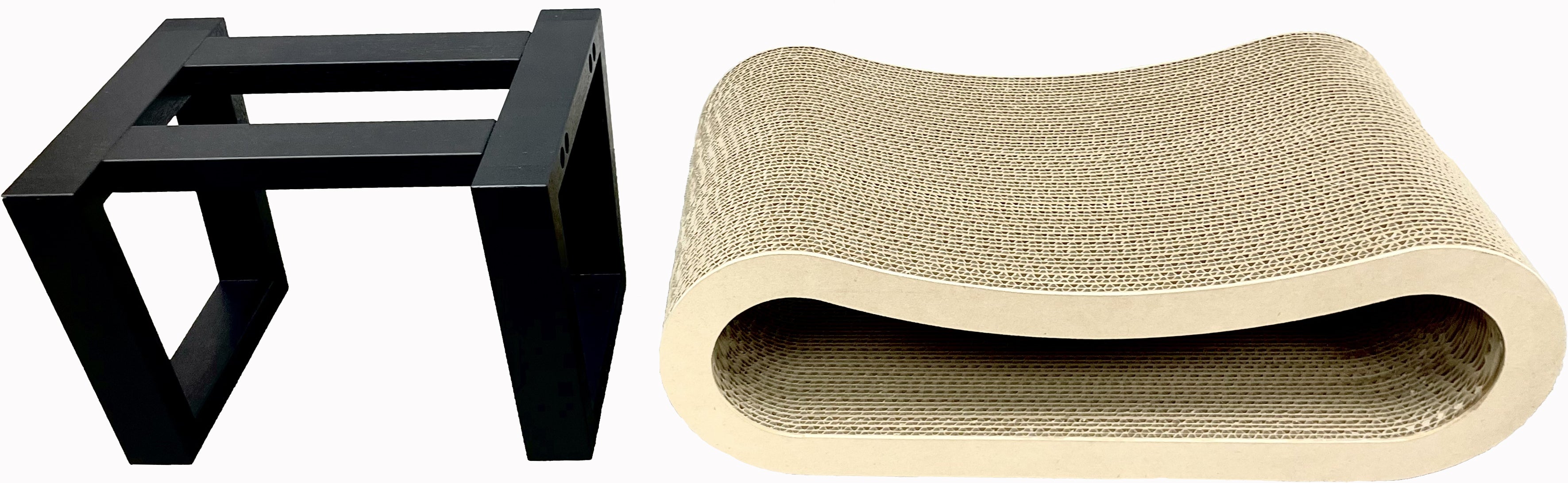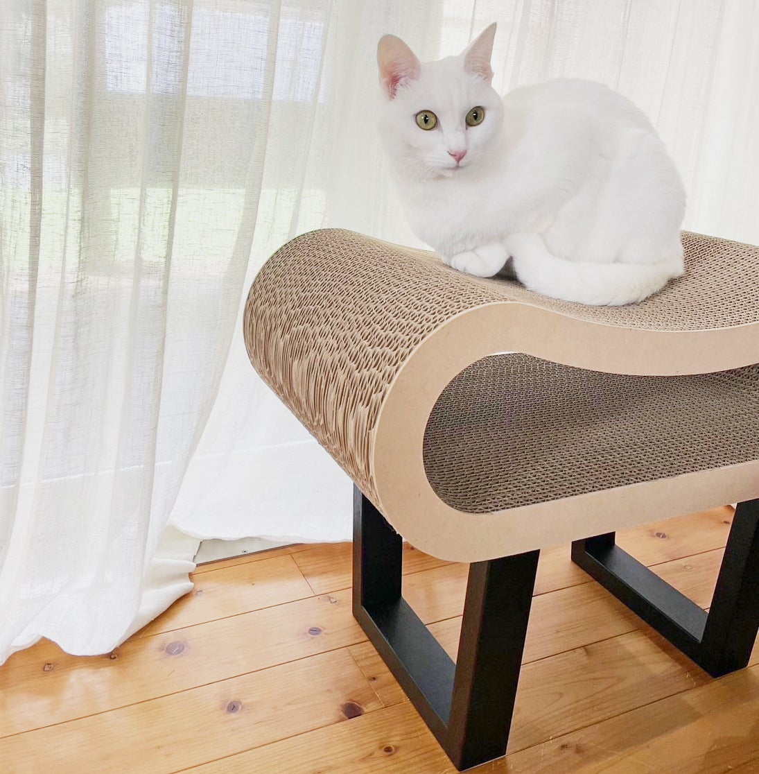 段ボール箱や設計はもちろんの事、木材に匹敵するような強度のある強化ダンボールを使用したダンボール家具の先駆けとして、ネジ・釘を使わないダンボール家具やダンボールインテリアをご提案して来ましたが、この度木材家具メーカーとのタイアップで、猫様用のインテリア家具の爪研ぎを、今までいただいたお客様の声を形に更にパワーアップしたいと製品開発を行いました。常に弊社の思いは北欧家具に負けないデザインとアイデアをダンボールで形にする事。