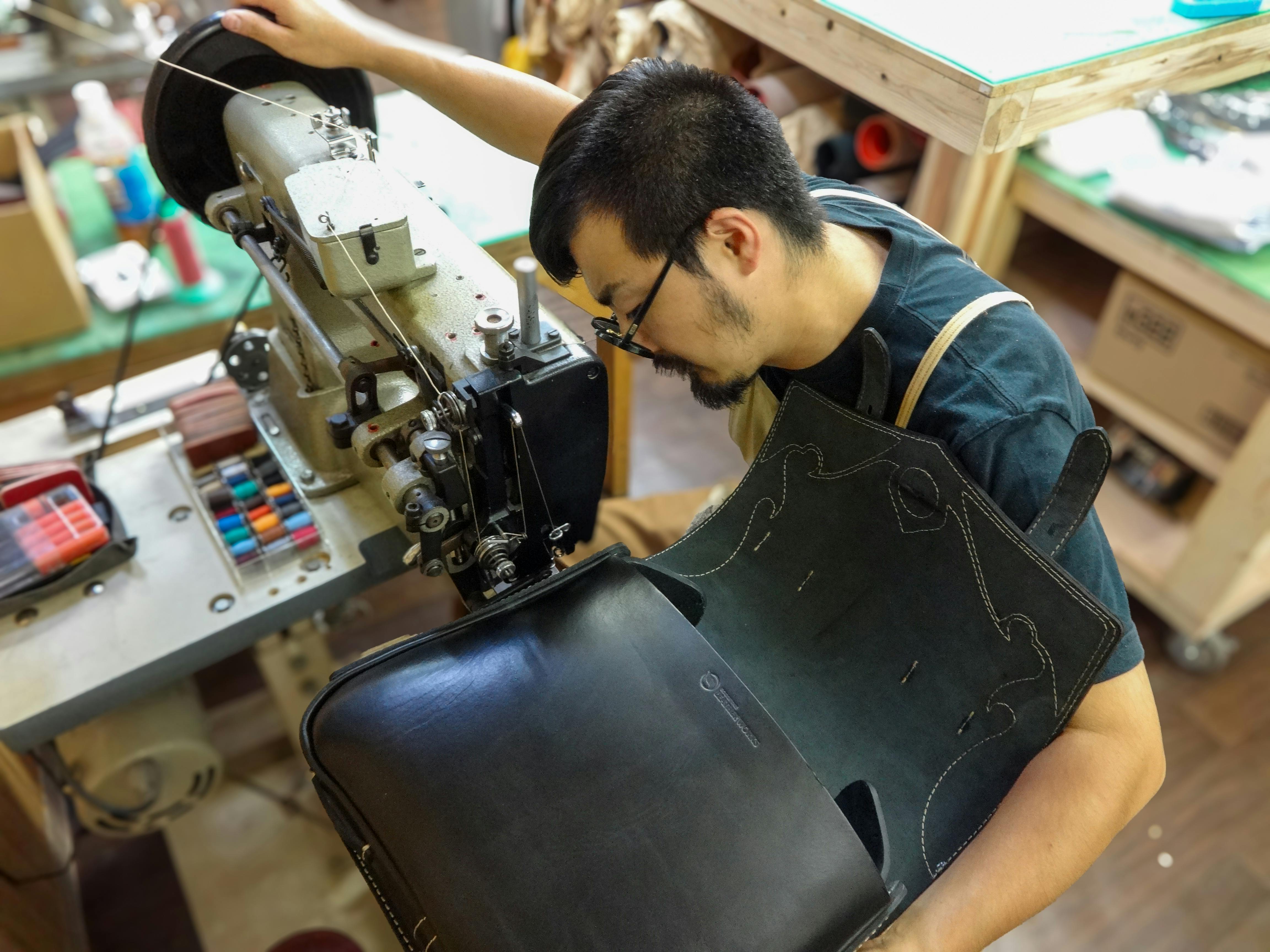 信頼のおけるさまざまな国内部材メーカーより届いた素晴らしいクオリティの材料や、機材を使い「Kangaroo bag カンガルーバッグ」は完成します。