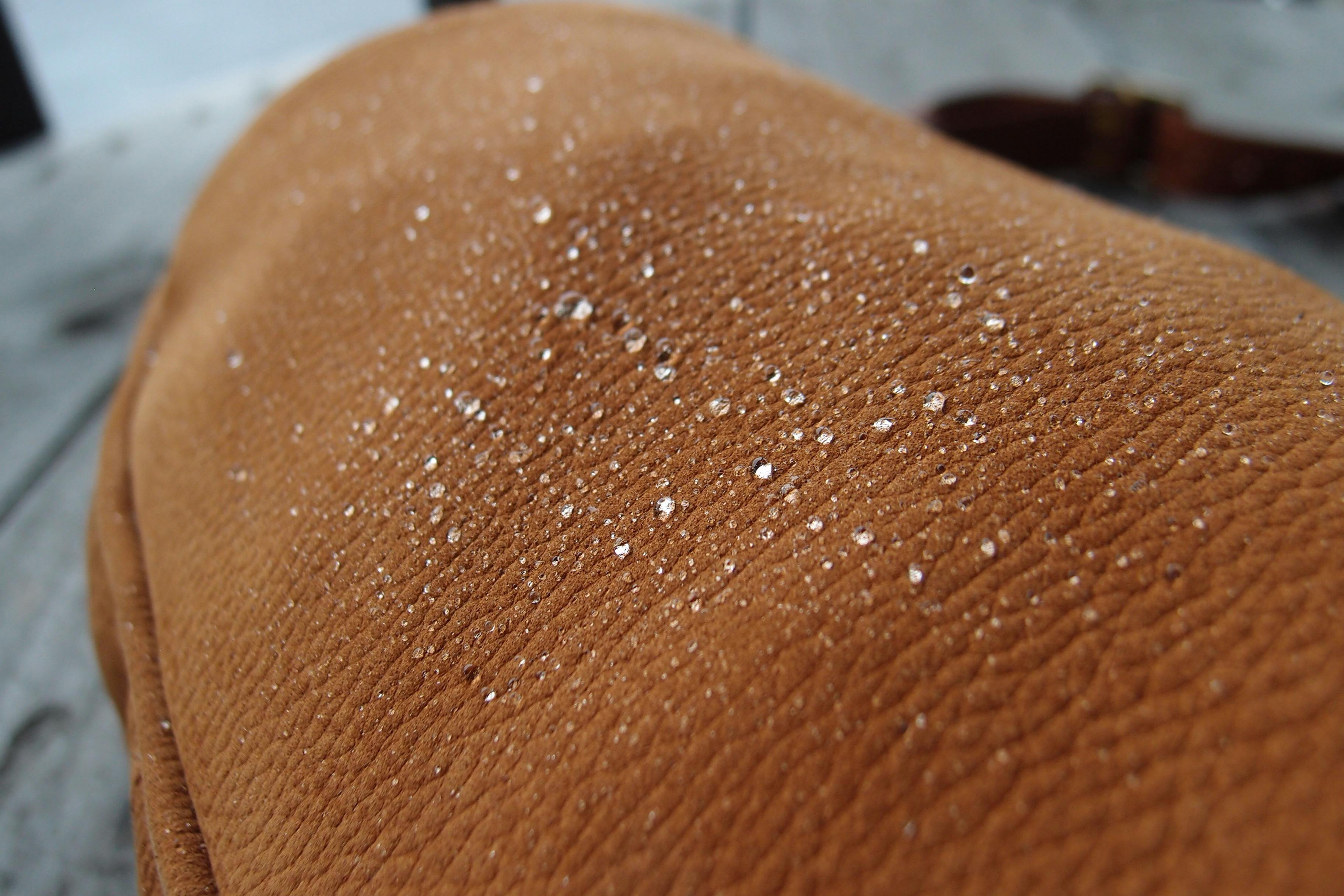 ヌバックレザーとは革表面を細かくやすり掛けをし起毛させたビロードのようなしなやかな手触りと豪華な見た目が魅力の皮革です。そして「セザール」ならではの特徴は、撥水処理がされていることです。
