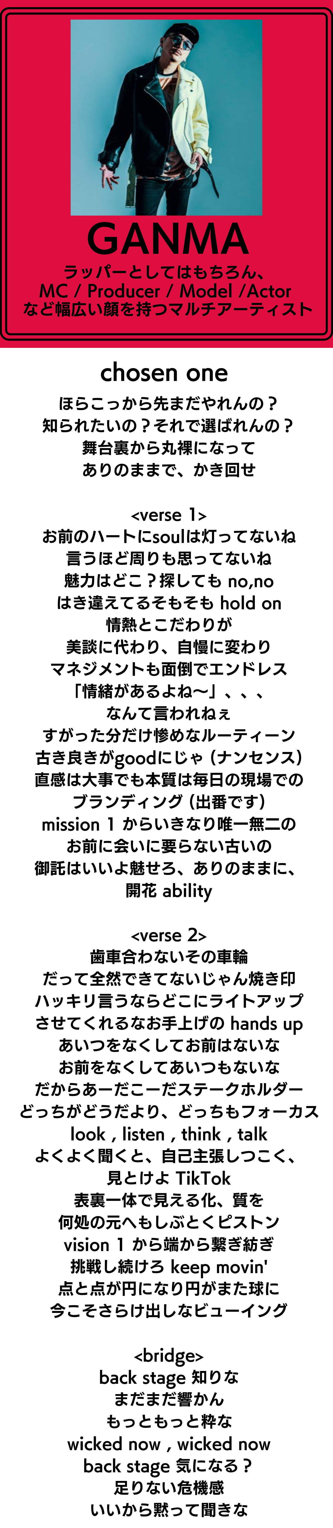 ■GANMAが作詞・作曲したテーマソング『chosen one』の歌詞と、トレイラー動画をここで先行公開します。