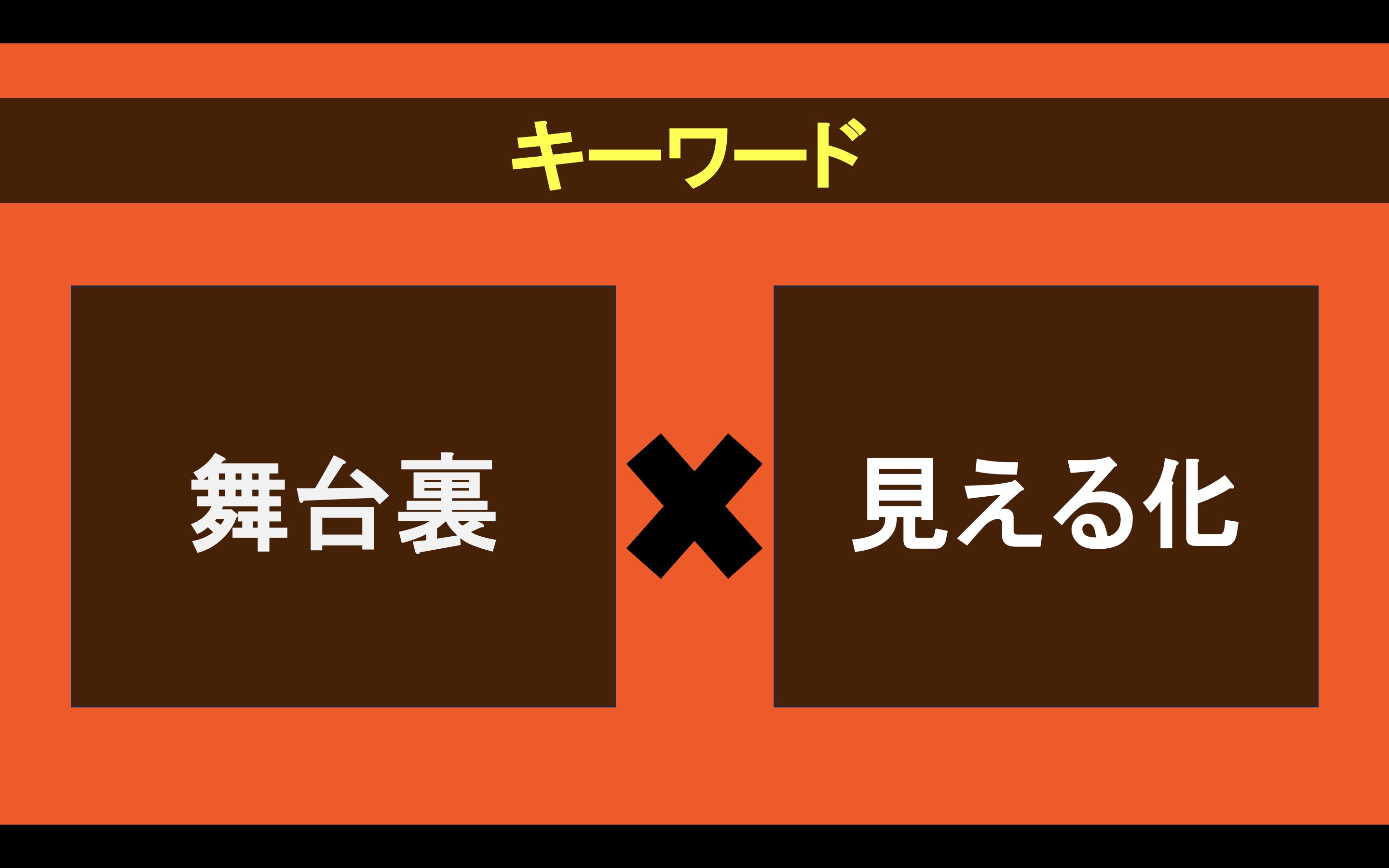 講演で最も強調したのが、「舞台裏」を見える化することの大切さです。