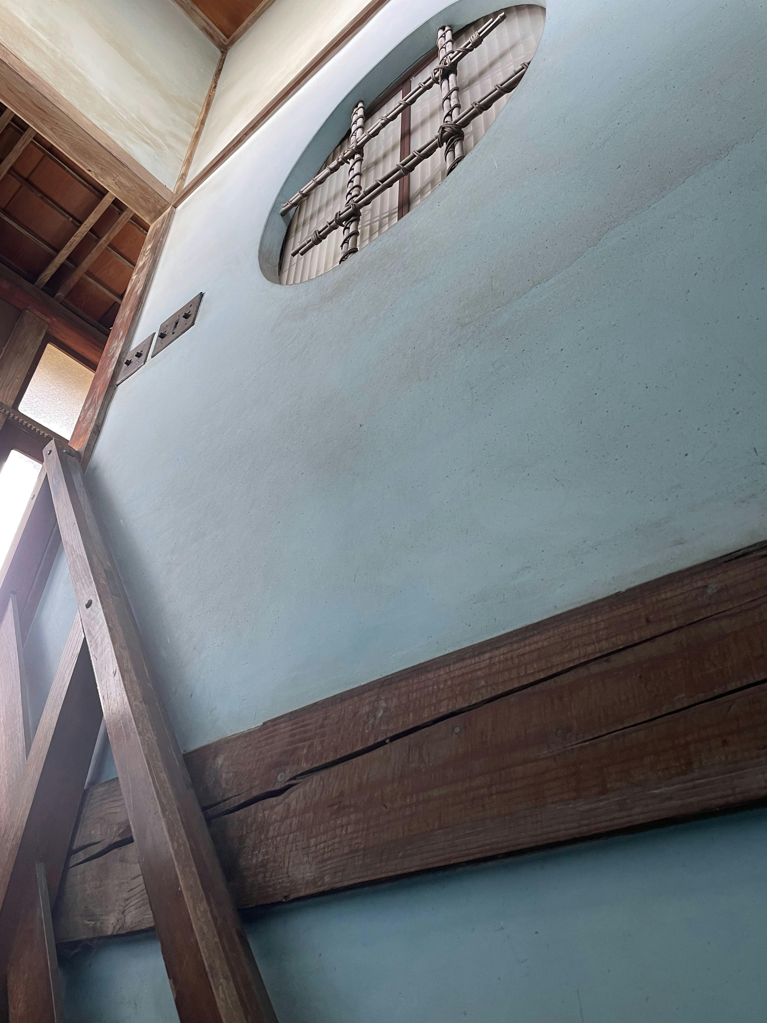 室内の漆喰壁は淡い水色で高い技術の必要な「藍」を使用した可能性あり。(調査依頼中)