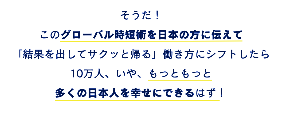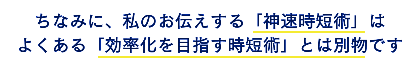 1人でも多くの方が結果を出してサクッと帰るために「神速時短術」を実践され、
