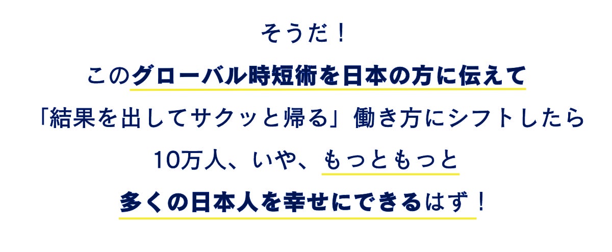 1人でも多くの方が結果を出してサクッと帰るために「神速時短術」を実践され、