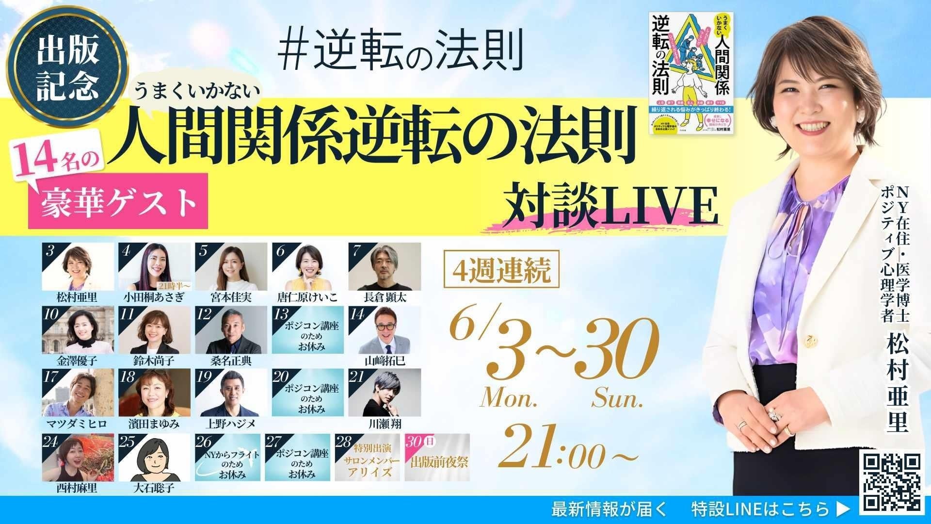 松村亜里です。これまでご支援、応援いただいた皆様、本当にありがとうございます!このたび、リターンの大好評・即完売につき、新リターン&追加リターンを行うことにしました!https://camp-fire.jp/projects/view/743503<注目の〈新リターン〉はこちら!>▶松村を応援! 11周年記念パーティーで「横断幕」を送る権利 松村への応援の気持ちが、形として残ります!▶松村亜里の「1日鞄持ち」 松村の1日に密着できるチャンスです!▶NY開催! 松村と一緒に「NY大学ツアー」 コロンビア大学のツアーと併せ、 ランチタイムに松村とお話しすることが可能です!大好評につき、待望の〈追加リターン〉はこちら!▶7/7開催! 出版記念講演会「特典付きVIPコース」 未発表のウェルビルディングカードと 松村とのツーショットが確約された、注目のVIP席です! ▶7/7開催! 出版記念講演会で「ブース」を出展できる権利 出版記念講演会に参加しながら、会場でお客様に、ご自身のサービスを紹介することができます!▶「地方講演会」が開催できる権利 あなたの街に、松村がやって来る!? 書籍のこと以外にも、ポジティブ心理学のことを聞ける絶好のチャンスです!ーーーーーーそして!なんとついに本日「支援金額1000万円達成しました~!!」Next Goal 1500万円達成にグッと近づきました。これも応援して下さっている皆様のお陰です。心より感謝申し上げます。そして引き続きこの書籍クラファンへのご支援をどうぞ宜しくお願い致します。