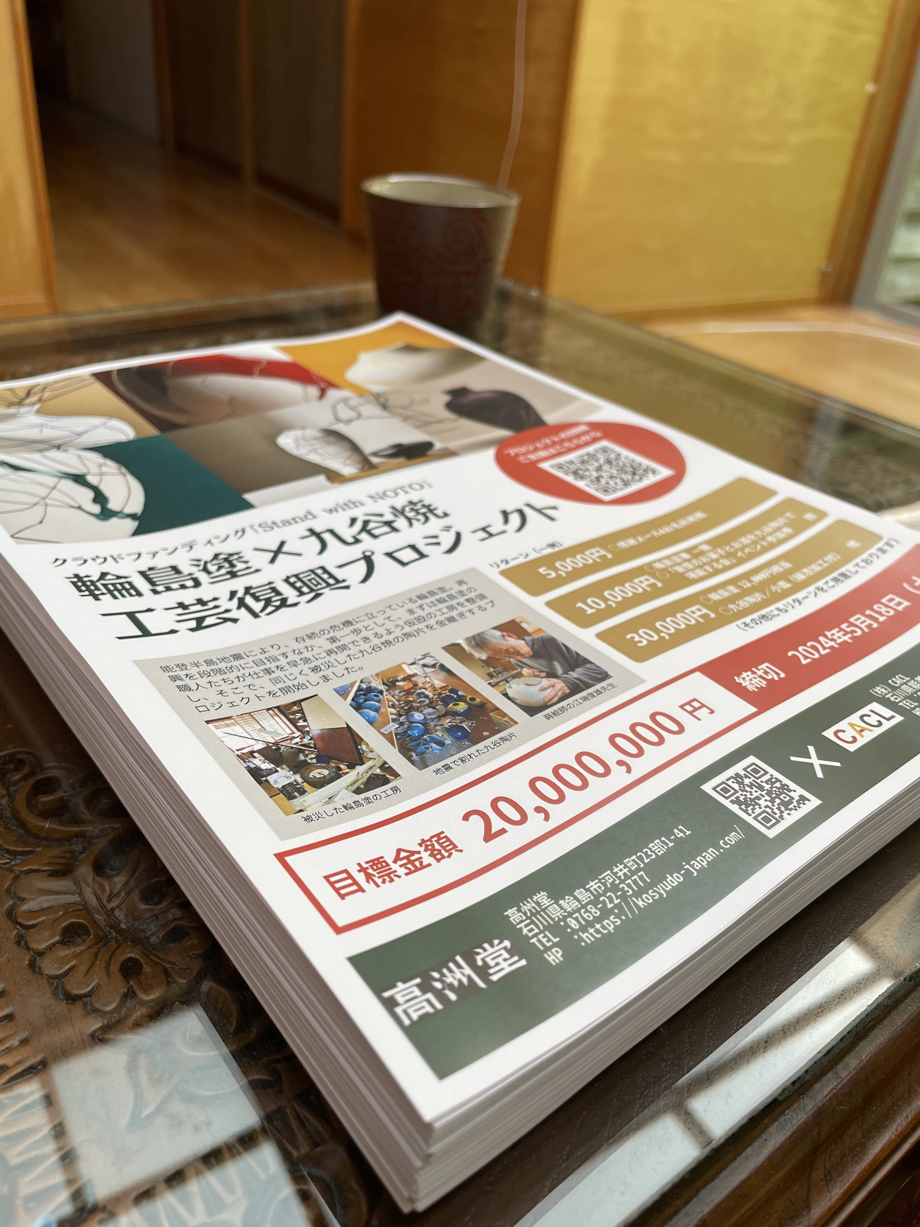 北野陶寿堂さんの横スペースをお借りし、作品展示とクラファンPRを行います。