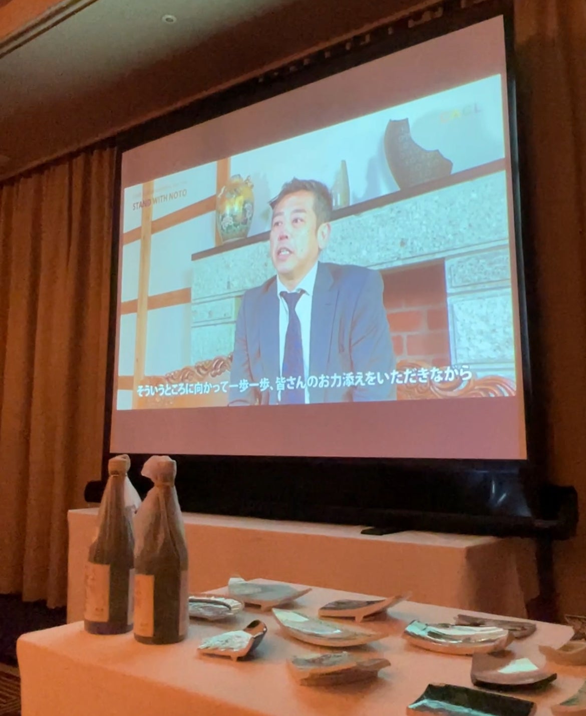 in大垣での放映の様子※同日に金沢で行われているイベント「能登のお菓子とお酒を九谷焼の陶片で堪能する会」の中で放映する動画を、インスタライブにて配信いたします。