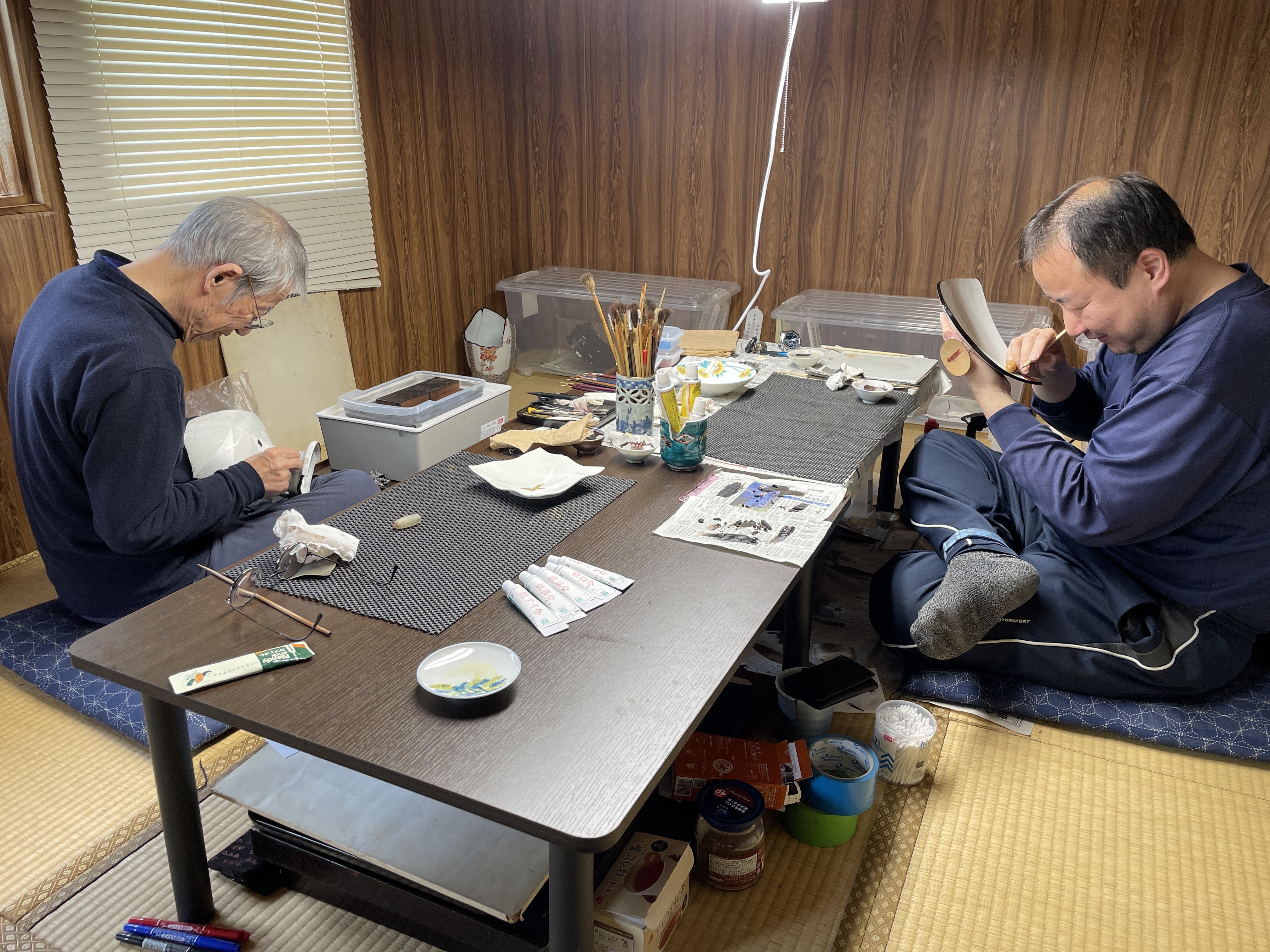 ※プロジェクトメンバーの高州堂とCACL、輪島塗蒔絵師の江端先生が仮設工房に集合し、プロジェクトへの思いや制作した作品について語ります。