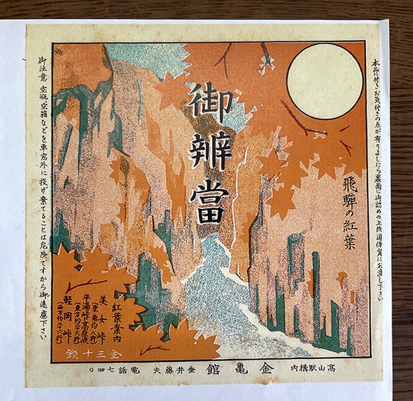 復刻駅弁は、飛騨高山の駅弁屋「金亀館(きんきかん)」さんが保管していた、昔のデザインの掛け紙を使って懐かしい駅弁を再現します。その掛け紙が複数あるため、復刻駅弁の掛け紙は日替わりとなります。