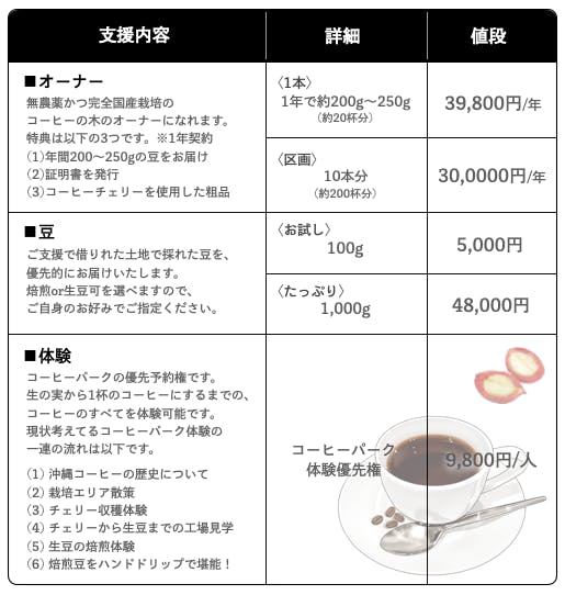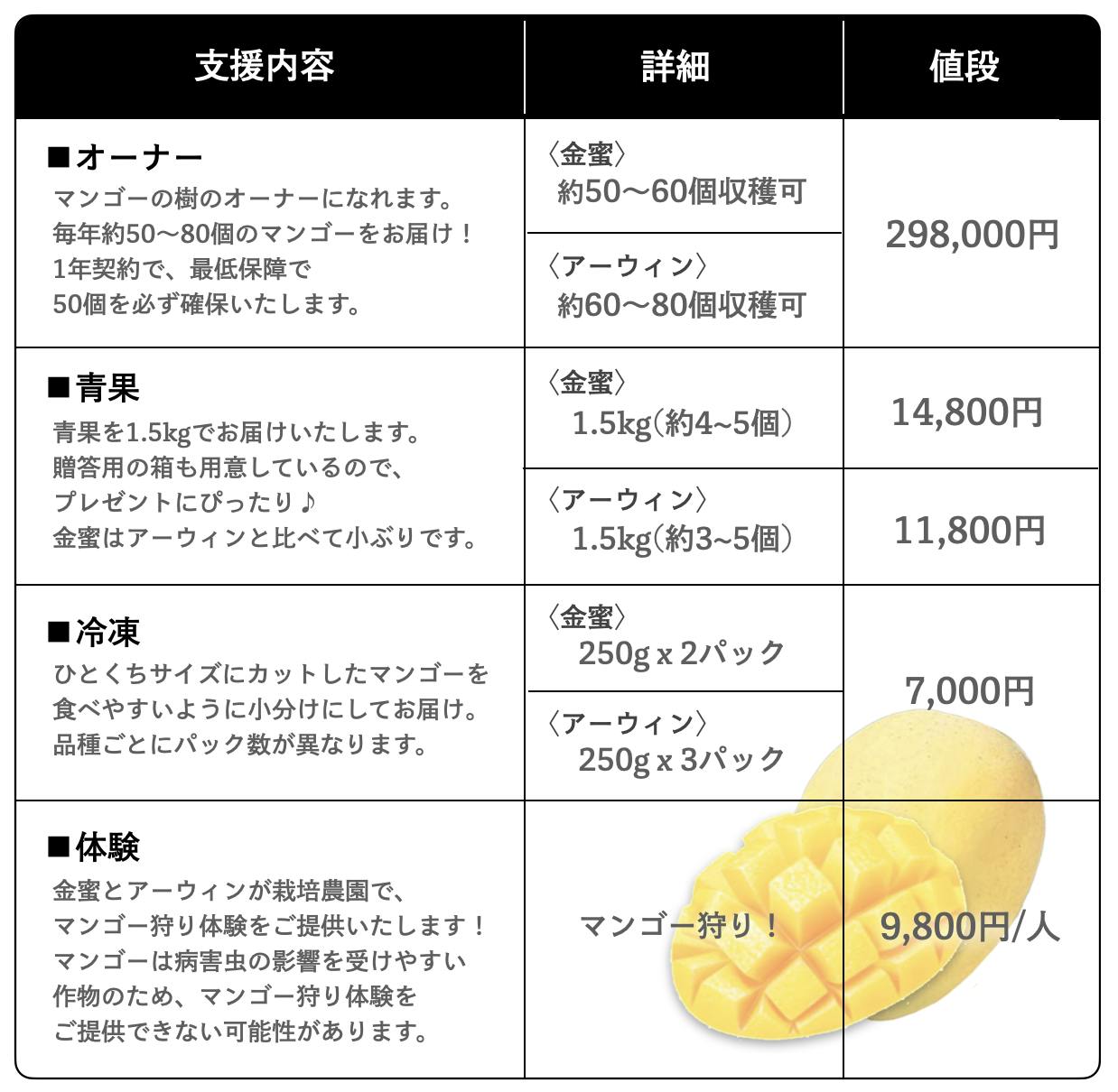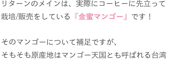 大きく分けて「マンゴー」「コーヒー」「その他」の3部構成なので、それぞれのパートに分けてひと目でわかる表を作成しました!