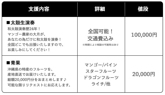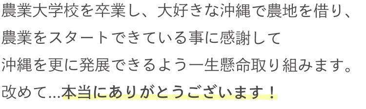 2024/05/31 22:56クラウドファンディング...終了しました!なんとなんと、達成率は200%を超え、合計157名の方から、2,171,800円ものご支援をいただくことができました!農業大学校を卒業したばかりの、駆け出し農家の僕達にご支援頂き....本当にありがとうございます!ご支援いただいた大切なお金は施設修繕や農地取得等、今後の活動のために大切に使用していきたいと思っております。クラウドファンディングを始める前は「ぼくたちに出来るかな...」「自分たちの商品を正しく知って貰えるかな...」「支援金が集まらなかったらどうしよう...」などなど、たくさんありましたが色んな方からご支援いただき、いざプロジェクトを打ち出してみると沢山の応援メッセージを頂き勇気と自信も貰いました。このプロジェクトを見て、何かできる事があれば教えてねと優しい言葉ををかけて頂けるような場面もあったり、実際にクラファンきっかけで名護市内で農地提供のお話も頂けました。(SNSの切り抜きで見づらくてすみません)土地もコネもない沖縄県で、0スタートの農業は想像以上にハードで正直骨が折れる事も多いですが、皆様からのご支援が強い活力に変わり夢に向かって前向きに進む事が出来ています!先駆けて育ててきたマンゴーの初収穫が遂に約一ヶ月後に控えております。まだまだ至らない事も多い僕たちですが、作物を通して皆様の暮らしにアイリー(幸せ)が届くようにこれからも一生懸命頑張っていくので今後ともよろしくお願い致します。 もっと見る