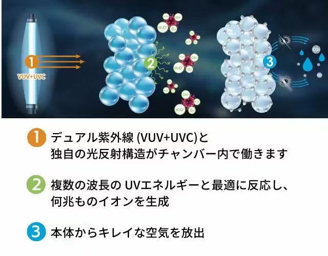 BRISE新技術のVUVライトで、清掃や交換が必要なフィルターを使用しない次世代空気清浄機です。