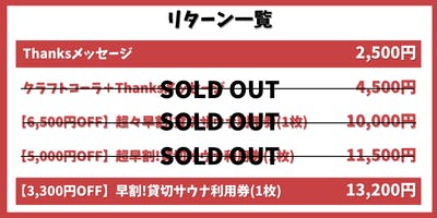 サウナOPENにあたり、CAMPFIRE限定での、【超早割チケット】や【VIP会員権】のプランもご用意しておりますので、是非CAMPFIREでの購入をしてください!
