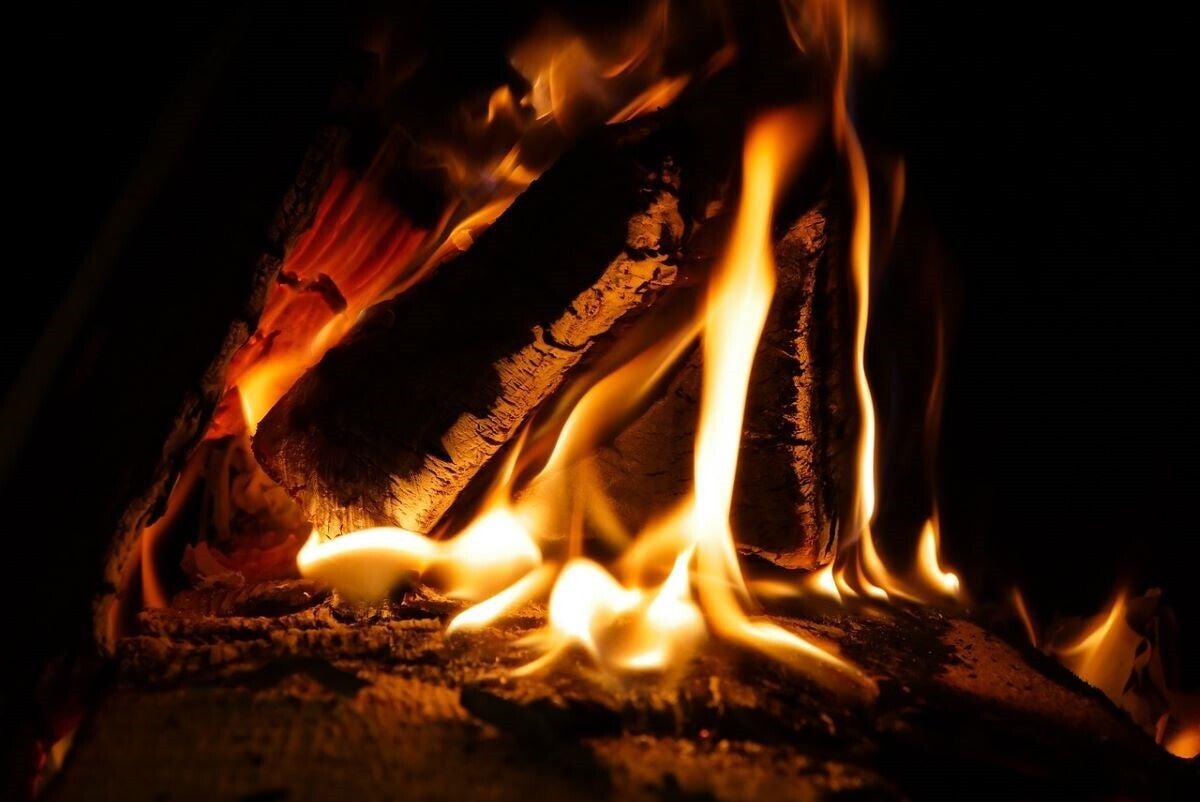 薪が燃えている様子を見ながら、身体の芯まで温め・・・