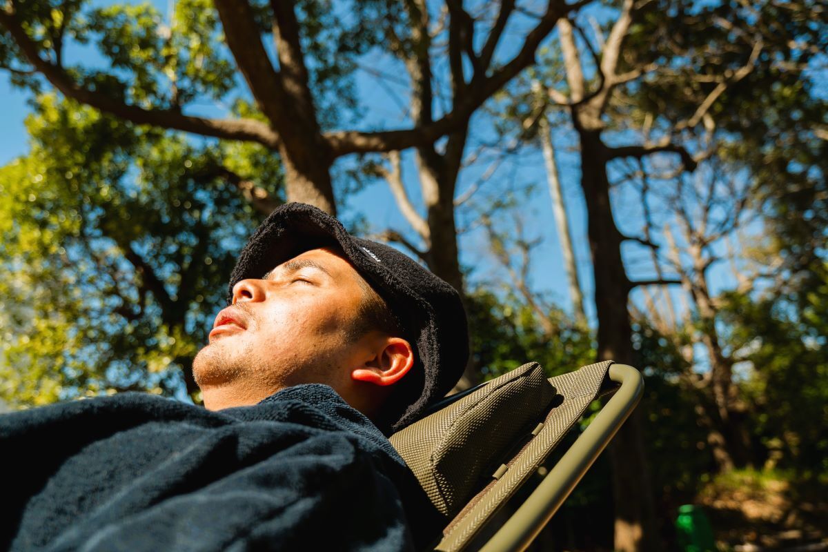 風で生まれる葉っぱのハーモニーの中、頭をからっぽにして、外気浴