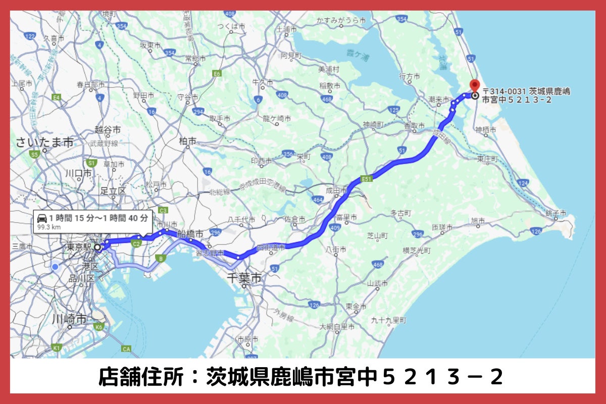 茨城県鹿嶋市ってどうやって行くの・・??と思う方が多いと思いますが・・!!実は、都内から鹿嶋市へのアクセスは良好です!!バス・車でのご来店がおすすめです!