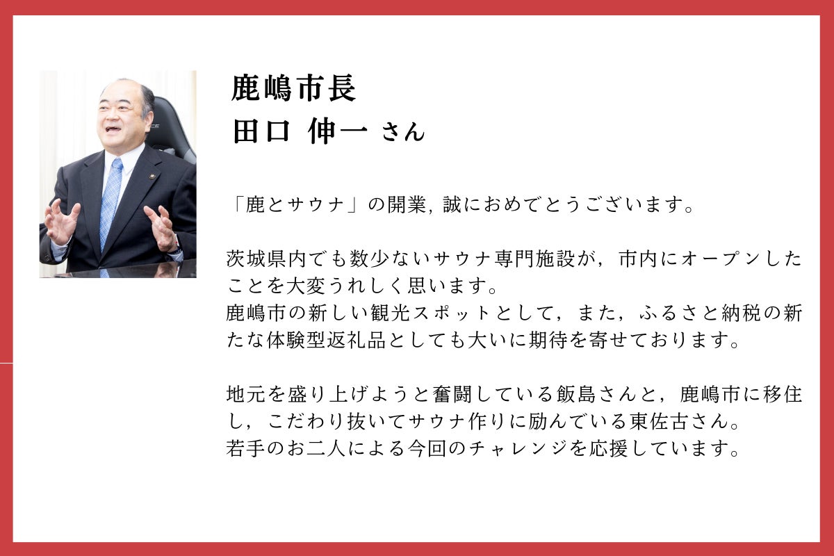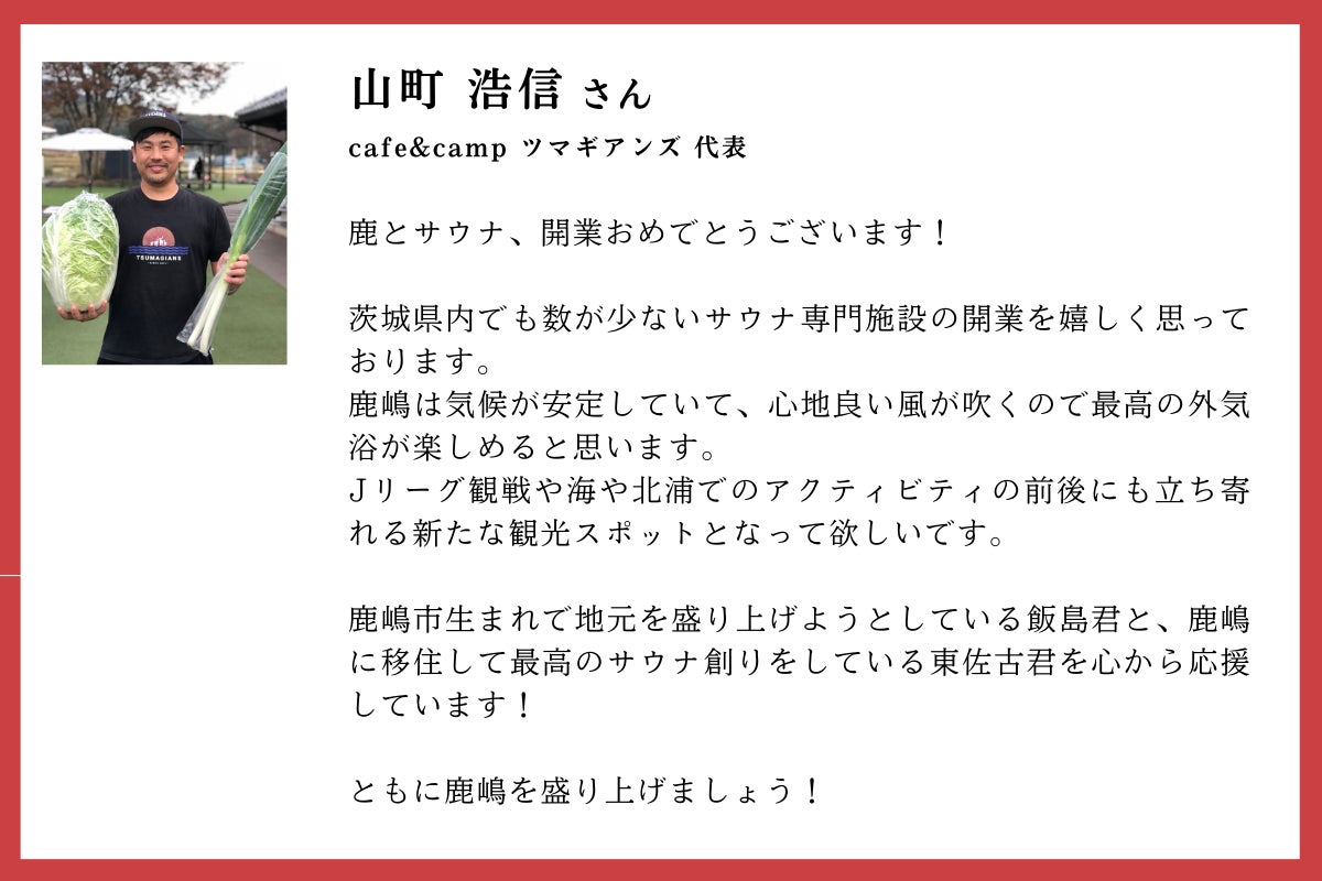 鹿とサウナは、「飯島が生まれ育った土地を守っていきたい」「鹿嶋市を盛り上げ、幸福度の高い町にしたい」という想いから、プロジェクトとして立ち上がりました。