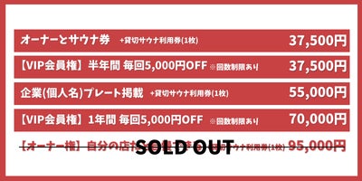 サウナOPENにあたり、CAMPFIRE限定での、【超早割チケット】や【VIP会員権】のプランもご用意しておりますので、是非CAMPFIREでの購入をしてください!