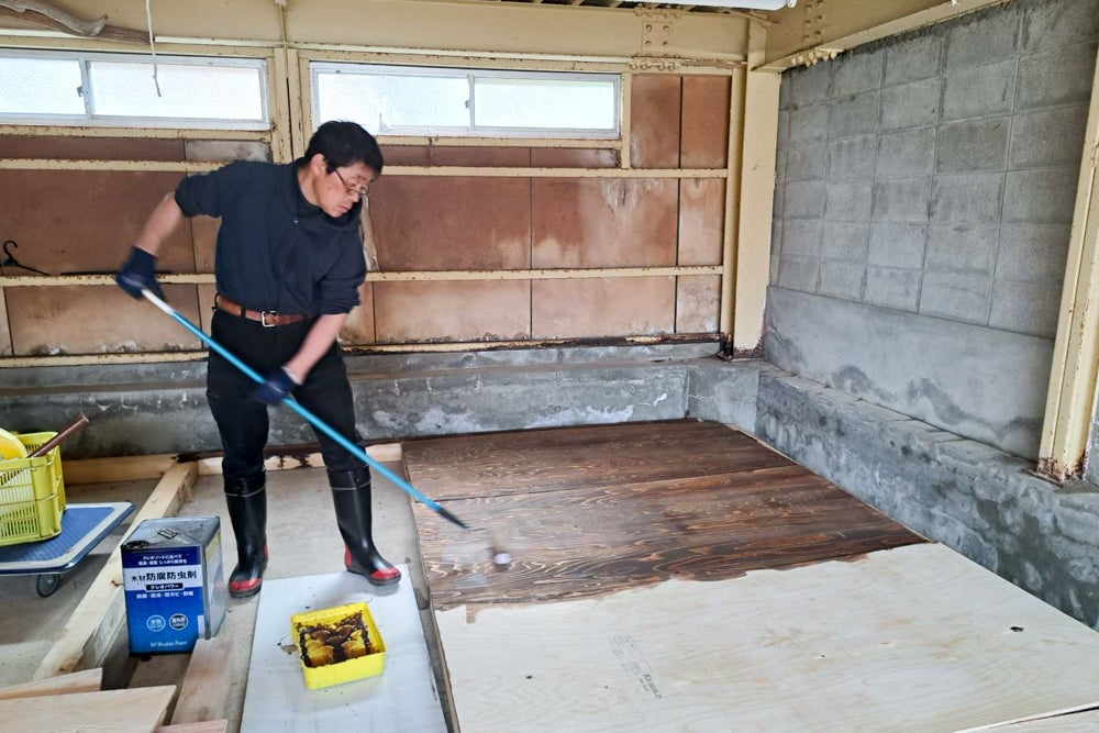 仕事場、展示場、倉庫の解体が迫ってきました。唯一残った車庫を急遽、救出した漆器や漆の避難場所にするためにDIYしています。急ぎます!